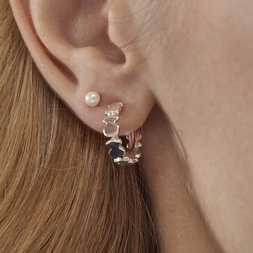 Сережки TOUS Straight зі срібла 925 проби з ведмедиками розміром 5,5 мм. Діаметр: 11 мм. Застібка-пусет.