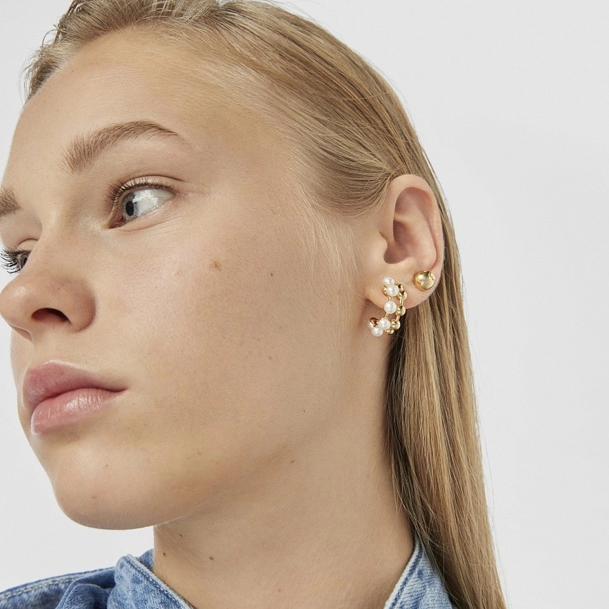 Подвійні сережки TOUS Gloss зі срібла 925 проби з покриттям Vermeil з одним кільцем з кульками та іншим - з культивованими перлинами. Діаметр кульок: 3,5 мм. Діаметр перлин: 4-4,5 мм. Діаметр кільця: 11 мм. Застібка-штифт. Vermeil : срібло з покриттям золота 18 карат.