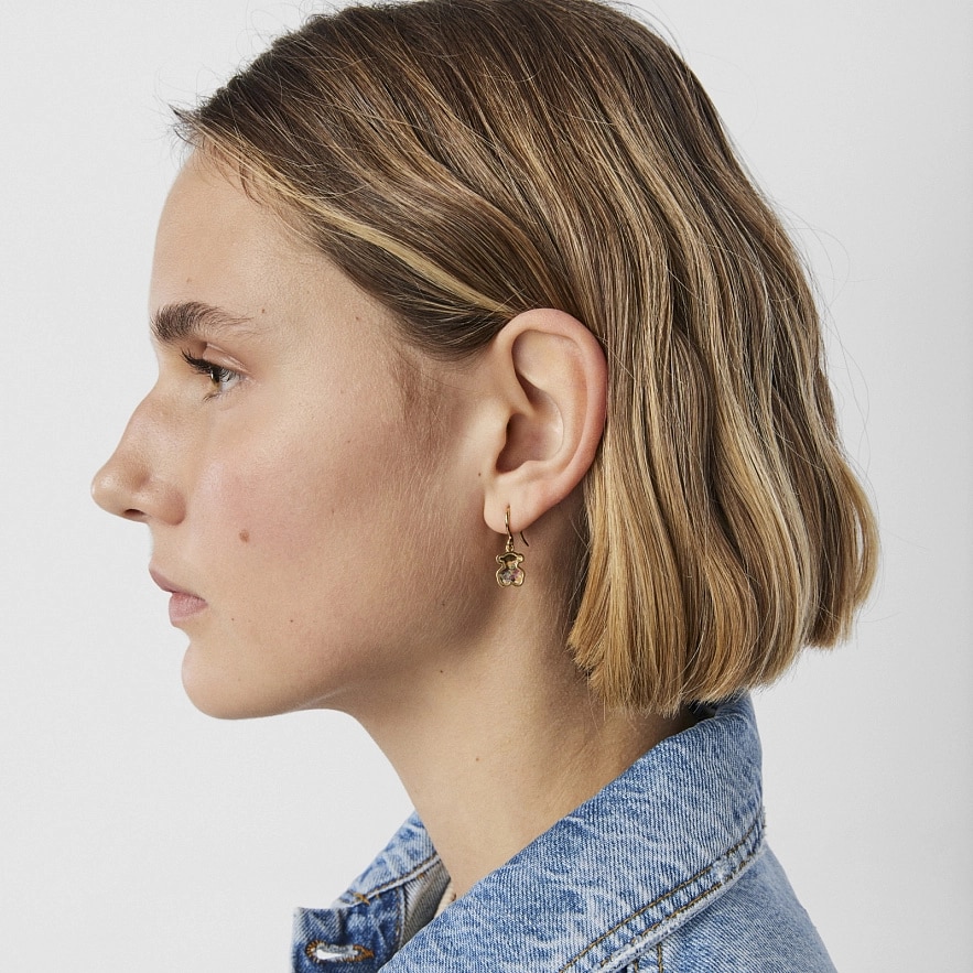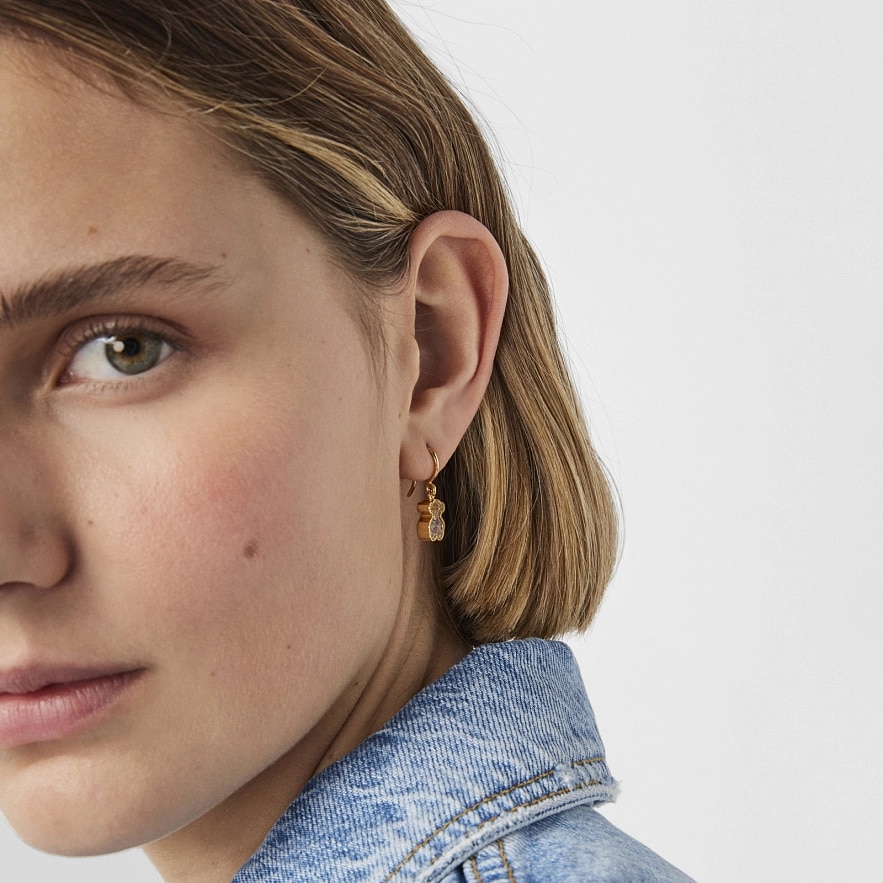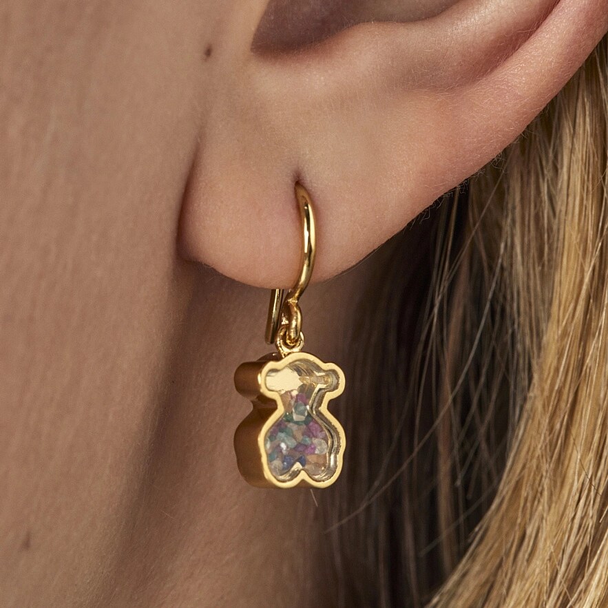 Сережки TOUS Areia зі срібла 925 проби з покриттям Vermeil з ведмедиком з фрагментами дорогоцінного каміння всередині. Розмір ведмедика: 10 мм.
