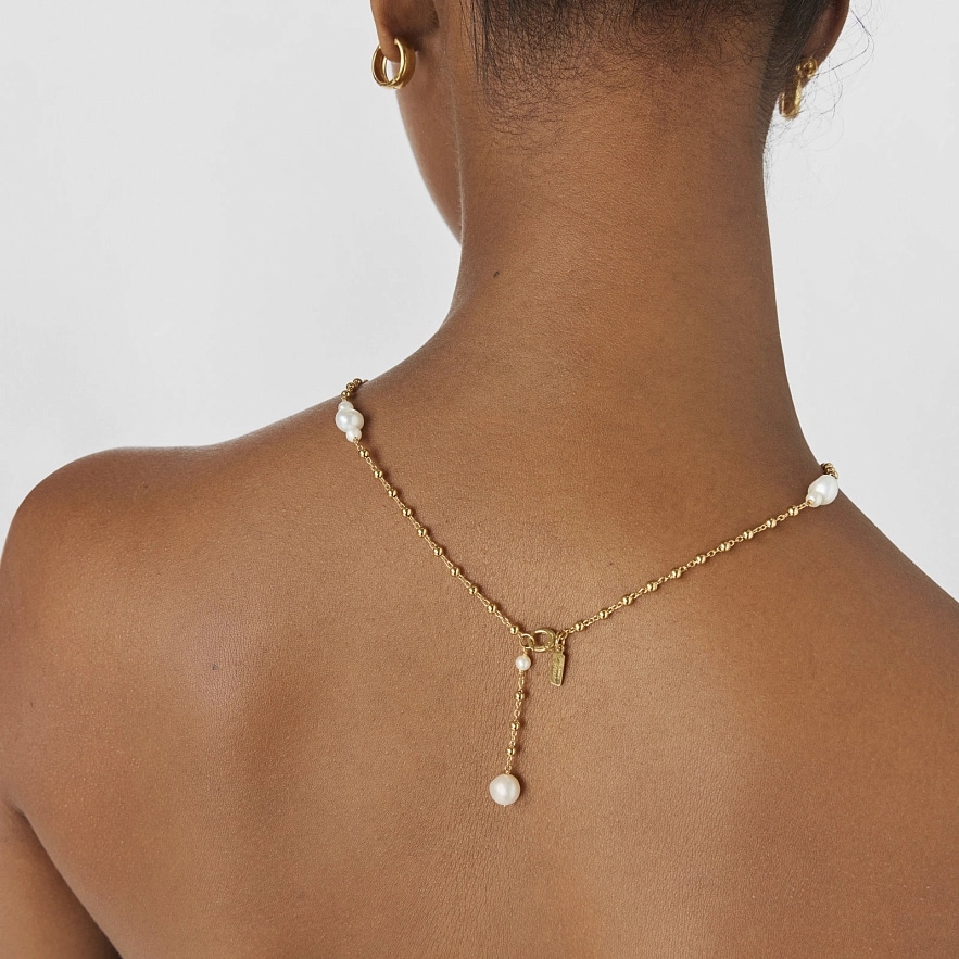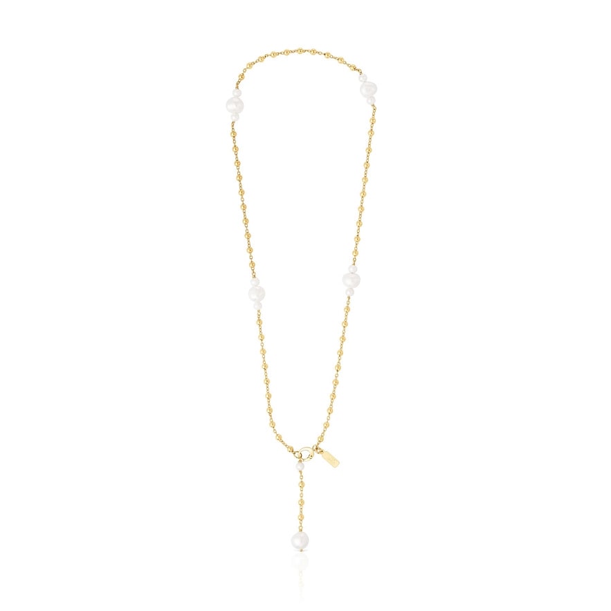 Кольє Tamara Falcó X TOUS із золотим покриттям 18 карат поверх срібла та культивованими перлами й кульками з золотим покриттям 18 карат поверх срібла. Розмір культивованих перлів: 4-4,5 мм та 7,5-8,5 мм. Розмір кульок: 3 мм. Довжина кольє: 49,5 см. Застібка-карабіна. Виріб виготовлений зі срібла 925 проби з золотим покриттям від 18 до 23 карат та товщиною 3 мікрони. Ця якість гарантує більшу довговічність прикраси.