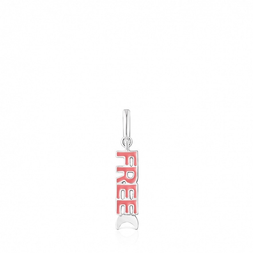 Кулон TOUS Crossword із срібла 925 проби зі словом FREE рожевого кольору з місяцем. Розмір 17 мм.