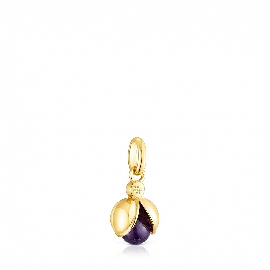 Підвіска TOUS Virtual Garden зі срібла 925 проби з покриттям Vermeil з аметистом розміром 5 мм, одним 2-мм хромованим діопсидом і деталлю, що імітує форму комахи. Розмір: 7 мм. Цей товар не включає ланцюжок. Vermeil : срібло з покриттям золота 18 карат.