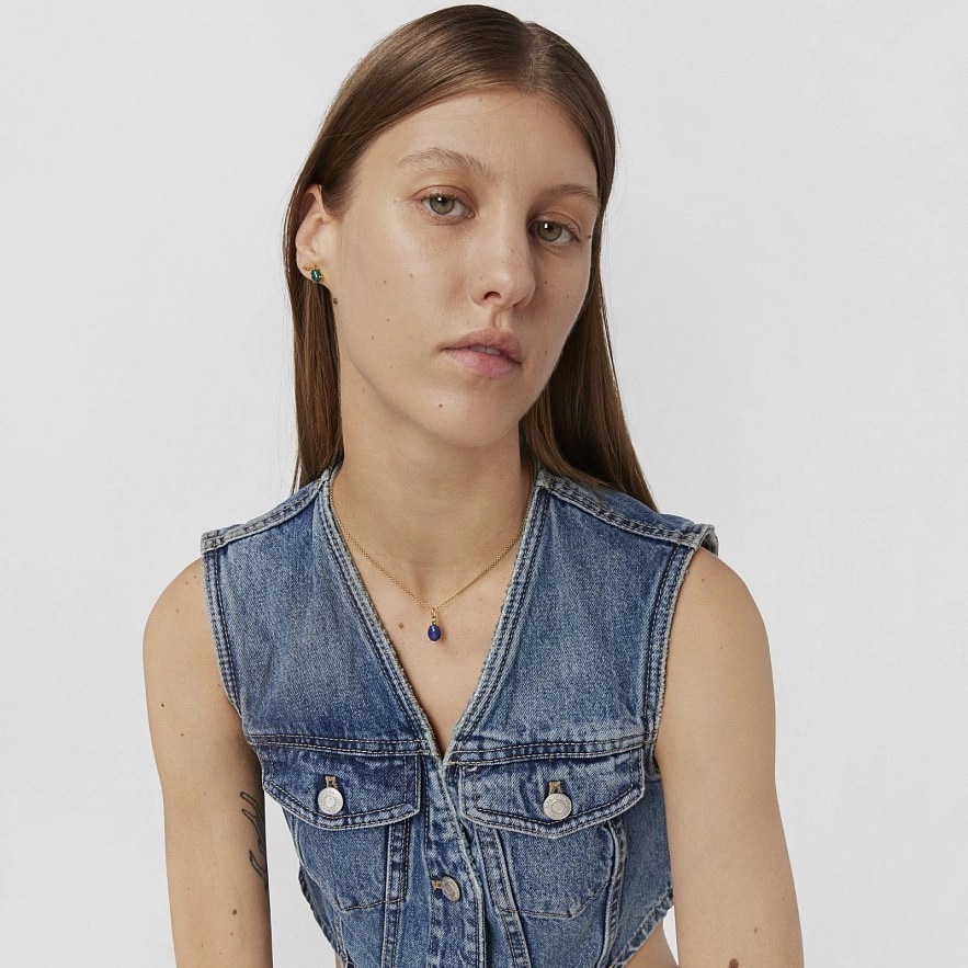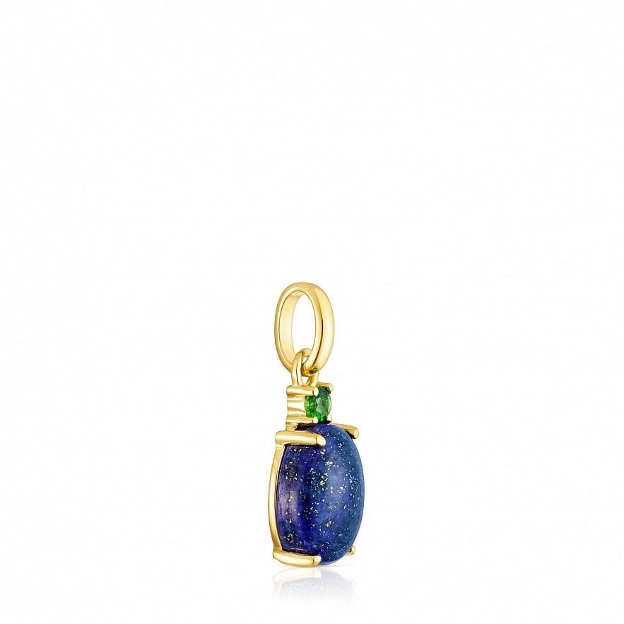 Підвіска TOUS Virtual Garden зі срібла 925 проби з покриттям Vermeil з дорогоцінним каменем лазуриту розміром 10 мм і встановленим 2,3-міліметровим хромовим діопсидом вгорі, що імітує форму комахи. Розмір: 11 мм. Ланцюжок в комплект не входить. Vermeil : срібло з покриттям золота 18 карат.