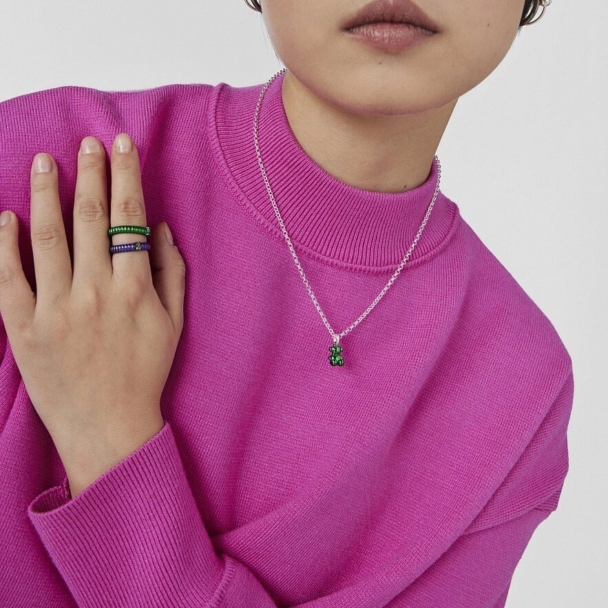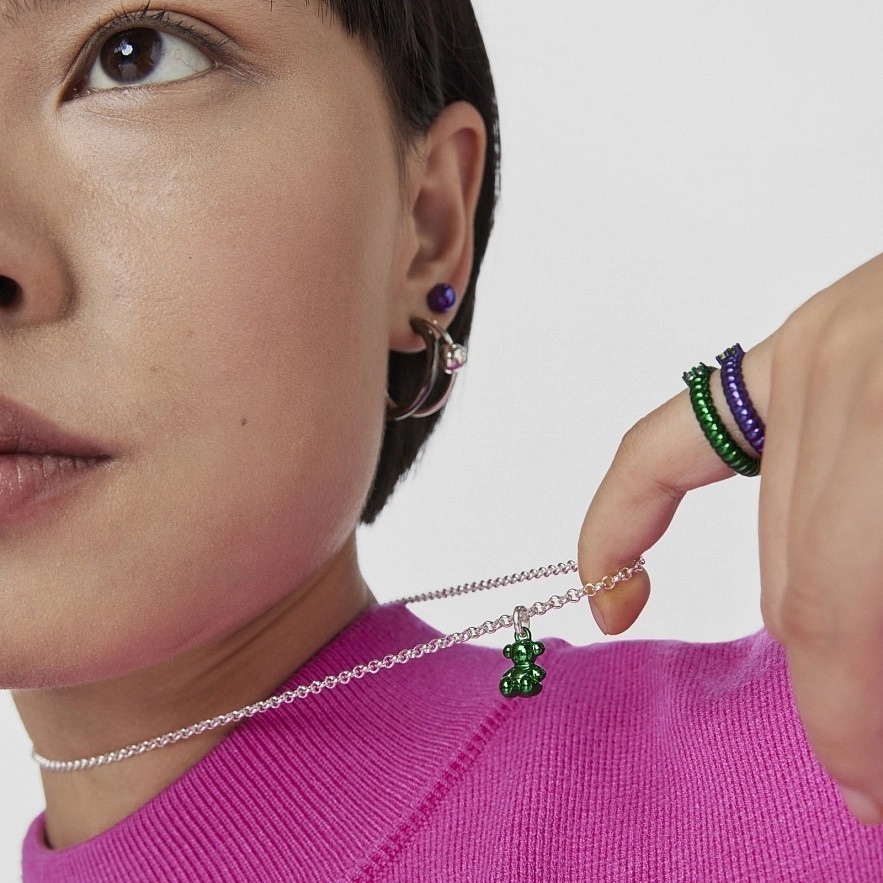Маленький кулон TOUS Bold Bear із зеленої сталі та кільця зі срібла. Розмір ведмедика: 11 мм. Цей товар не включає ланцюжок.