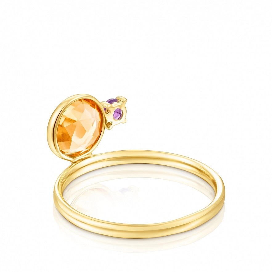 Каблучка TOUS Virtual Garden із золота 750 проби з цитрином 7 мм та аметистом 3 мм. Товщина каблучки: 1,5 мм.