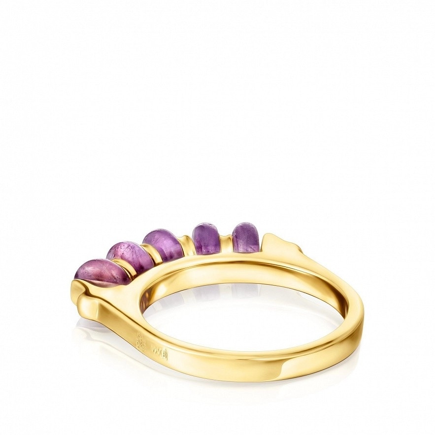 Каблучка TOUS Virtual Garden зі срібла 925 проби з покриттям Vermeil , що імітує структуру гусениці, з аметистами. Ширина каменів: 5 мм. Ширина каблучки: 3 мм. Товщина каблучки: 1,5 мм. Vermeil : срібло з покриттям золота 18 карат.
