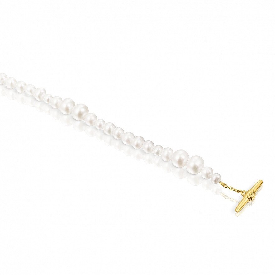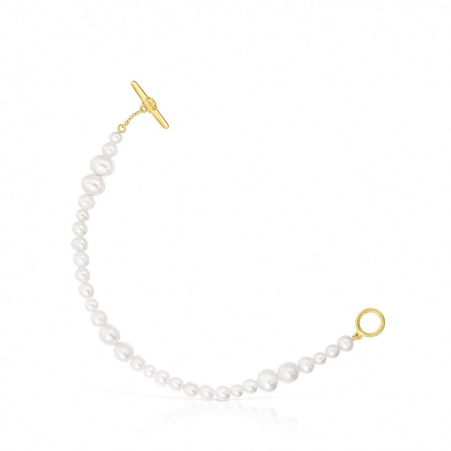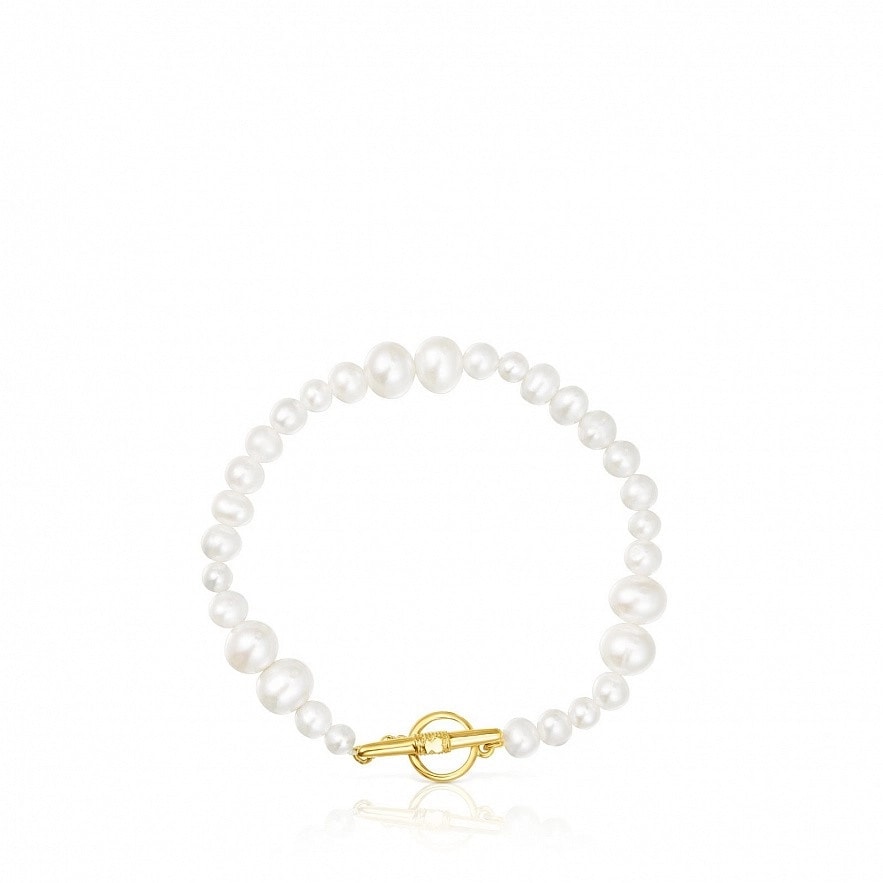 Браслет TOUS Lure з культивованих перлів з застібкою зі срібла 925 проби з покриттям Vermeil та з 3 мм деталлю ведмедика в центрі застібки. Розмір культивованих перлин: 4-7 мм. Довжина браслета: 20 см. Vermeil : срібло з покриттям золота 18 карат.