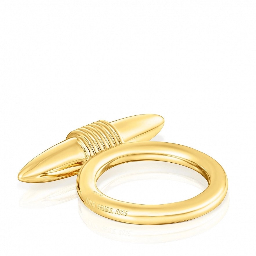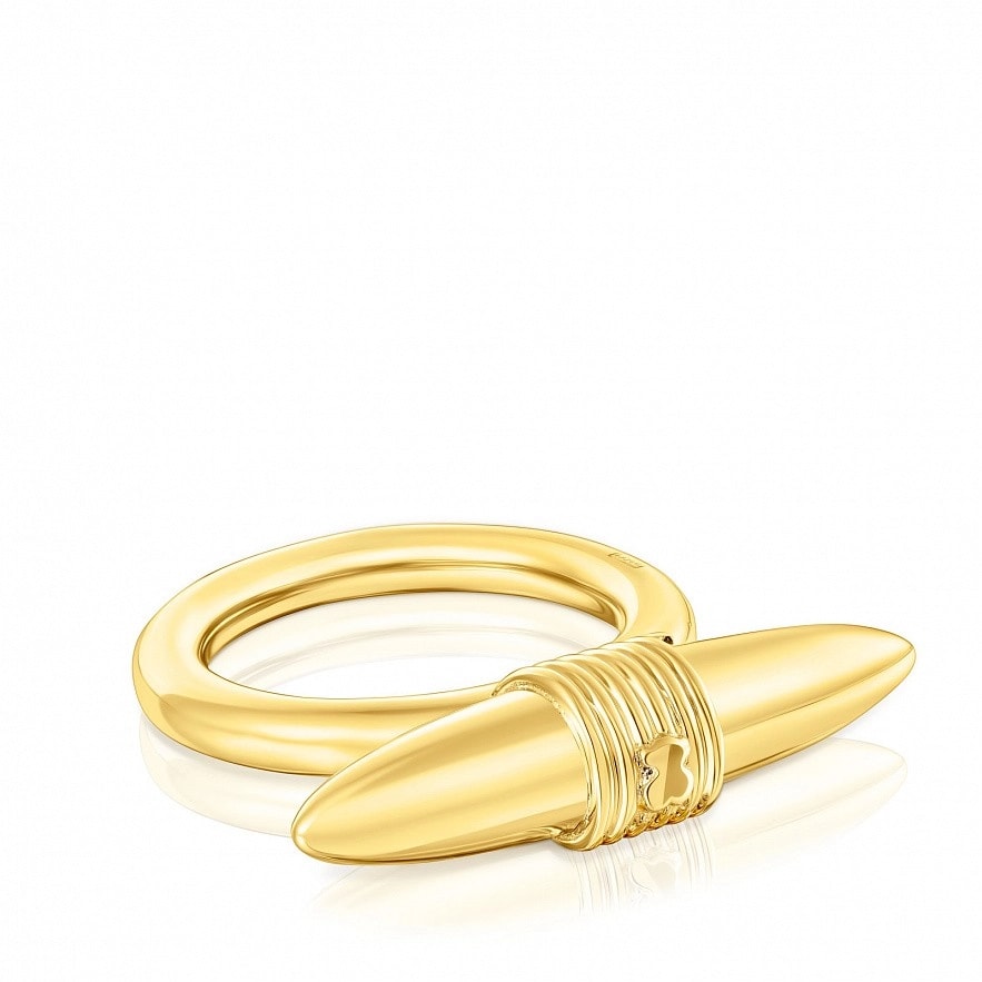 Каблучка TOUS Lure зі срібла 925 проби з покриттям Vermeil з деталлю ведмедика 3 мм в центрі мотиву. Розмір мотиву: 30 х 8 мм. Товщина каблучки: 3 мм. Vermeil : срібло з покриттям золота 18 карат.
