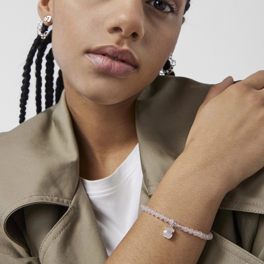 TOUS Icon Color браслет зі срібла 925 проби з гладкими кварцевими кульками розміром ~4мм і підвіскою з ведмедиком 9мм.