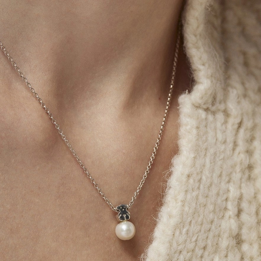 Ланцюг і кулон TOUS Sweet Dolls зі срібла 925 проби з перлинами 0,8 см. Вставка: 0,68 см. Довжина: 45 см.