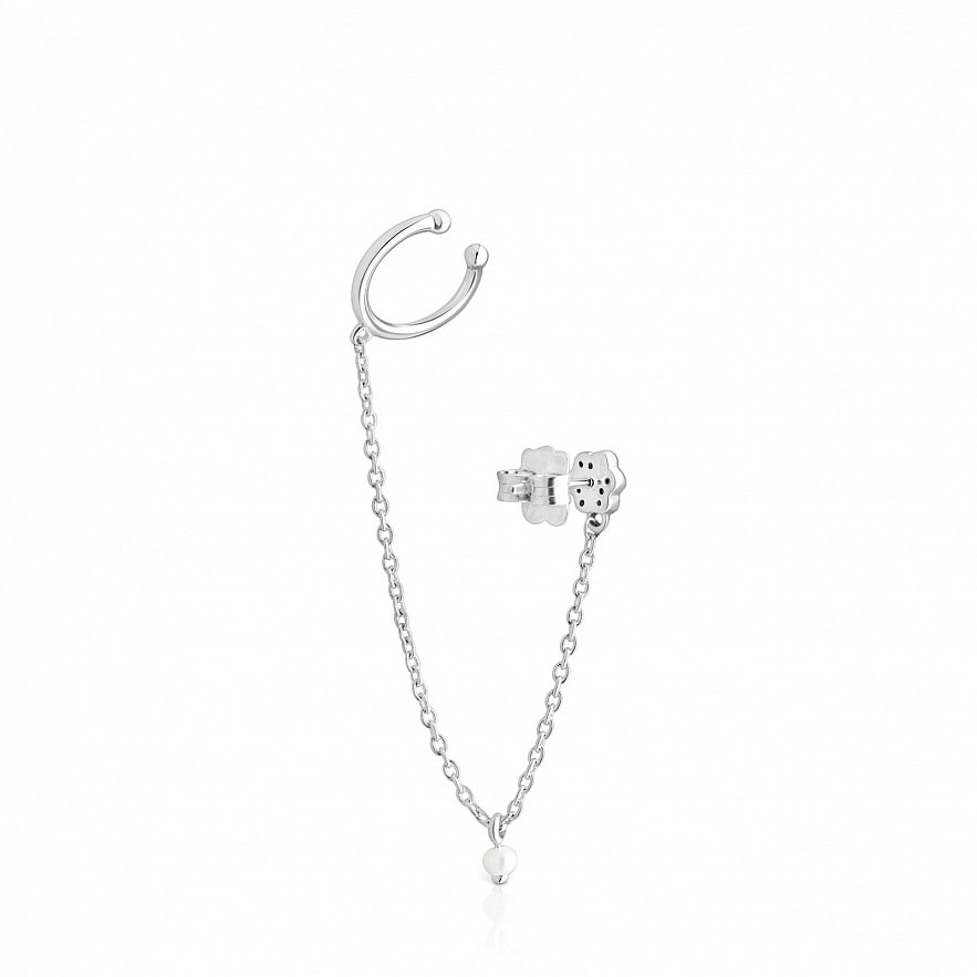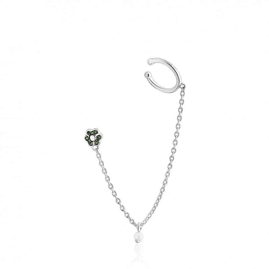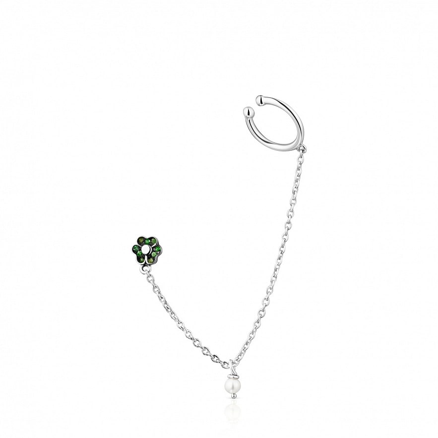 Кафа TOUS New Motif зі срібла 925 проби з квітковим мотивом у вигляді круглих хромованих діопсидів з огранюванням 1 мм і перлиною 3 мм, не прикріпленою до ланцюжка. Розмір кільця : 9,5 мм. Загальна довжина: 9 см.