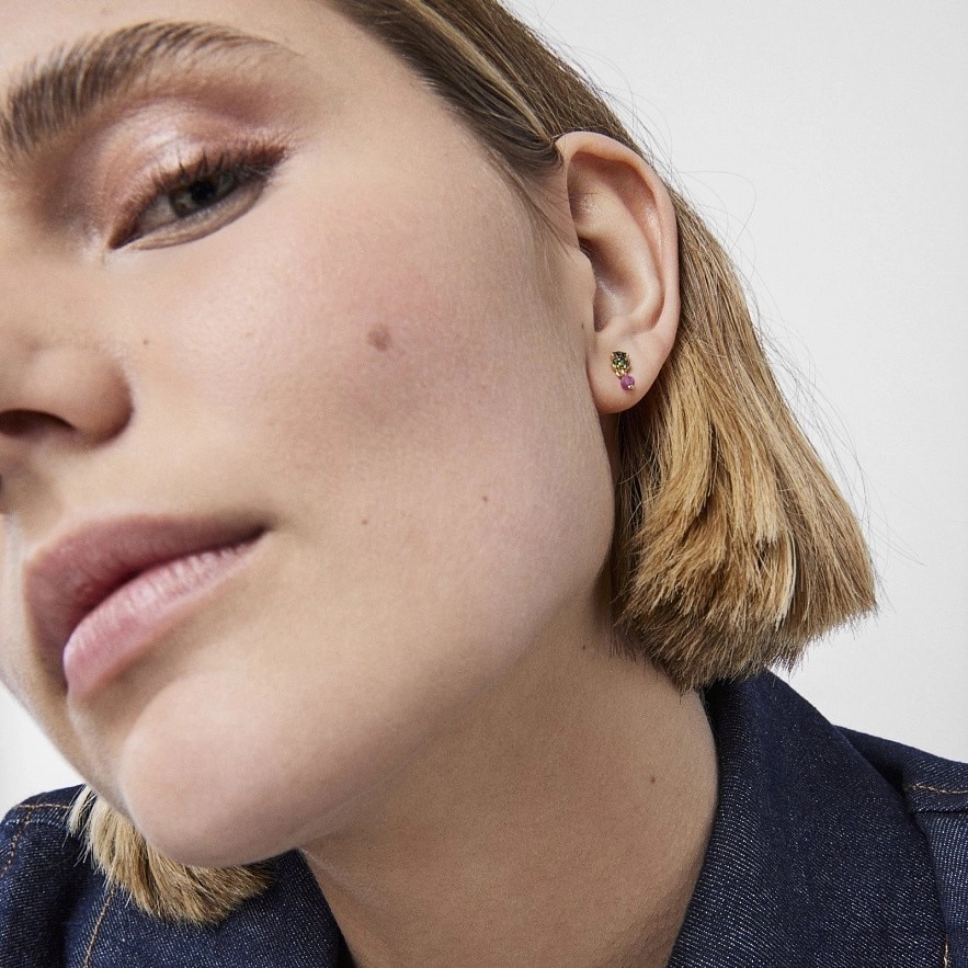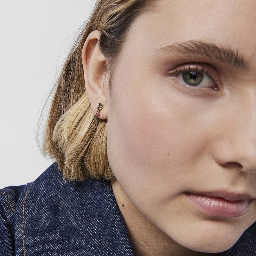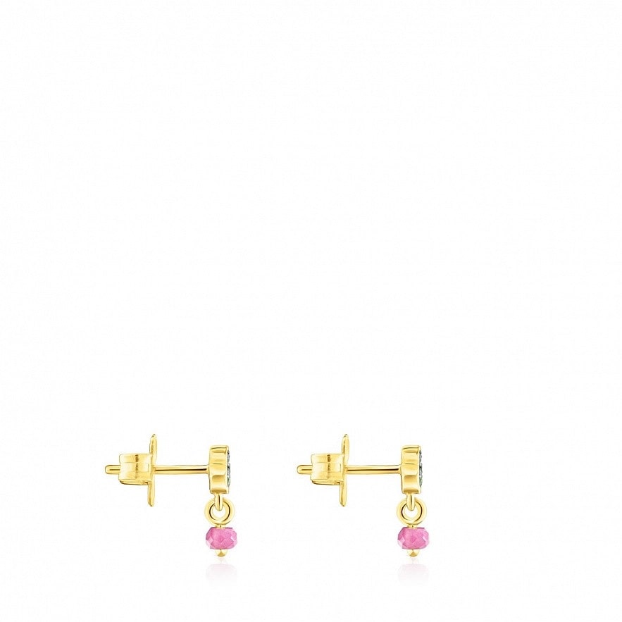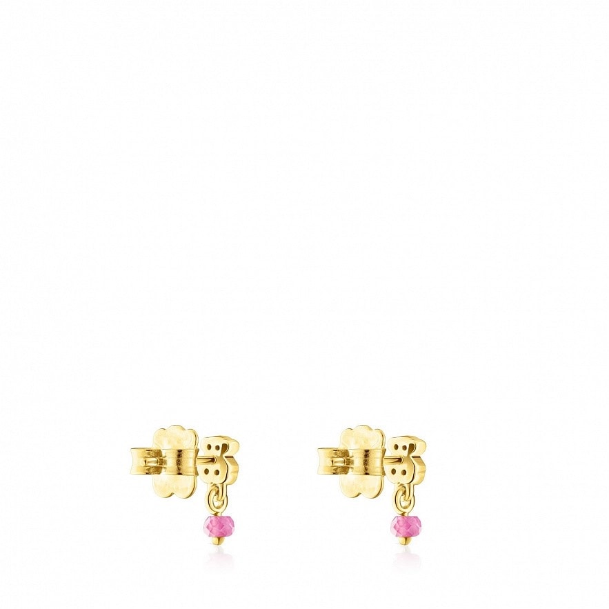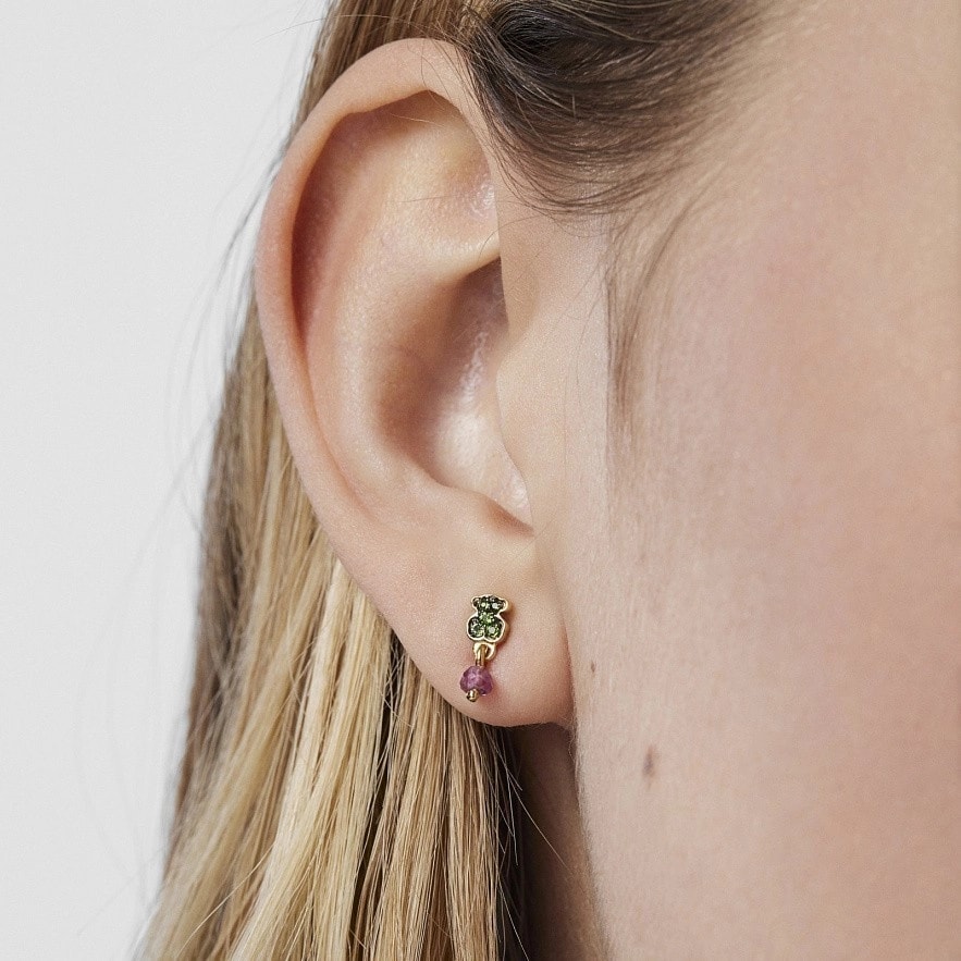 TOUS New Motif сережки зі срібла 925 проби з покриттям Vermeil з мотивом ведмедя з хромованого діопсиду та обробленими рубіновими деталями. Застібка-пусет. Розмір ведмедика: 4,6мм х 3,8мм.