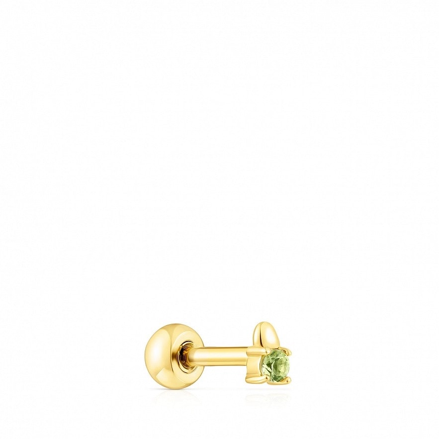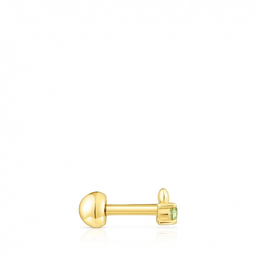 Пірсинг TOUS New Motif Ball з IP-сталі золотистого кольору з закріпленим перидотом. Розмір дорогоцінного каменю: 2 мм. Довжина стержня: 6 мм. Закручується гвинтом.