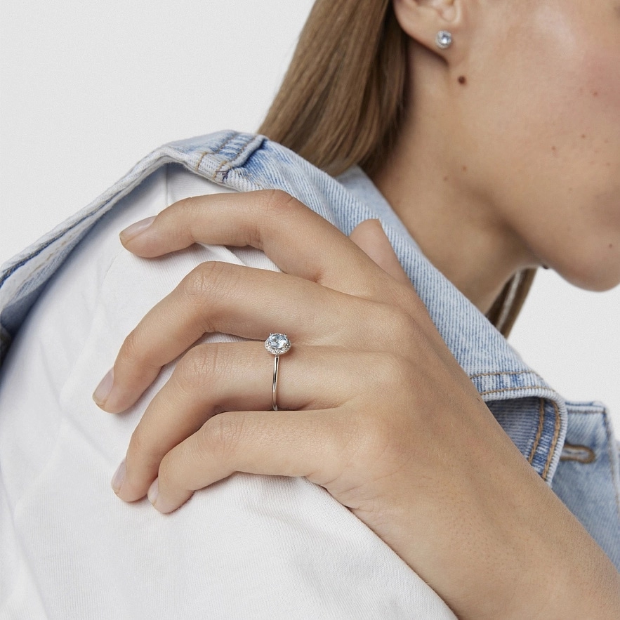 Каблучка TOUS Color Kings з білого золота 18 карат з діамантами та синім топазом. Загальна вага: 0.07 карат.