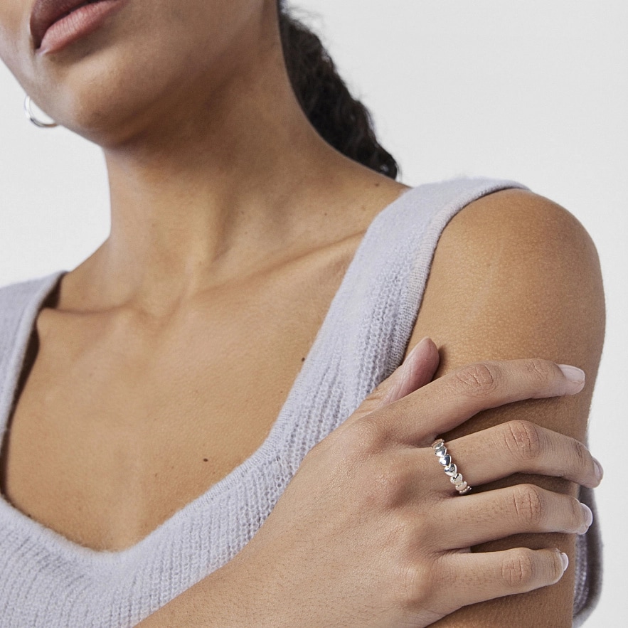 Каблучка TOUS Mini Icons зі срібла 925 проби з сердечками 4,5 мм. Техніка виготовлення: Штампування.