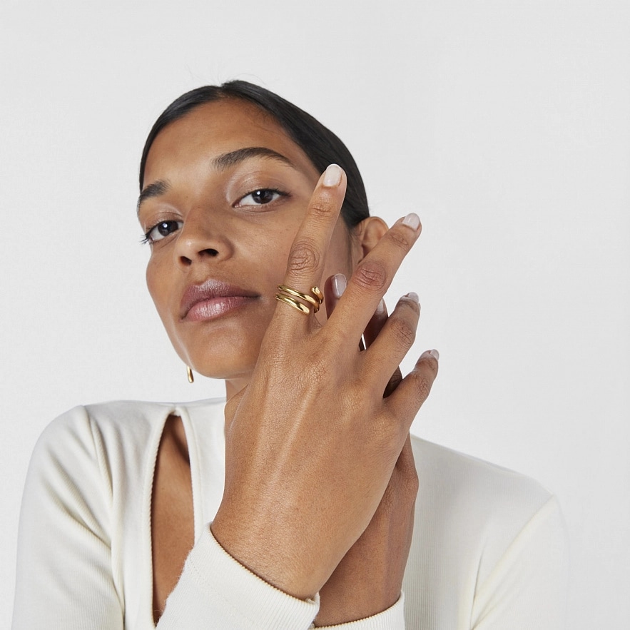 Каблучка TOUS New Hav зі срібла 925 проби з покриттям Vermeil . Верхня ширина: 13,75 мм. Нижня ширина: 6,25 мм. Товщина каблучки: від 2,9 до 4 мм.