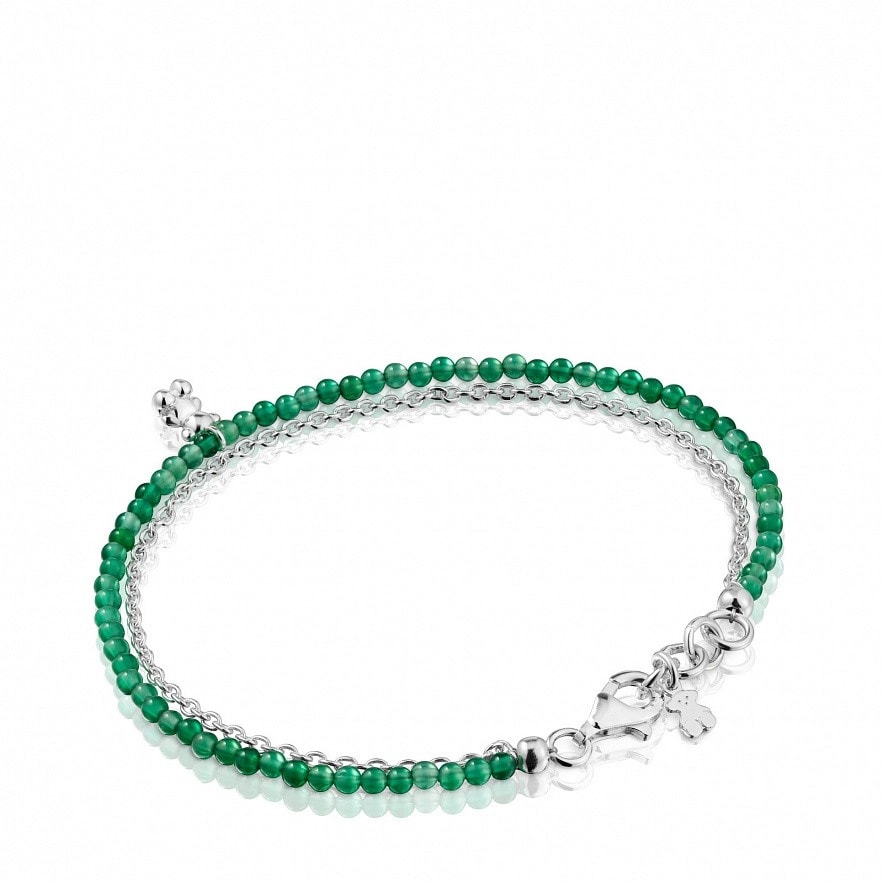 TOUS Bold Bear браслет зі срібла 925 проби та обробленого зеленого халцедону, що складається з двох ланцюжків, які з’єднані на кінцях. Один ланцюжок срібний, а інший зроблений з дорогоцінного каміння зі срібним кулоном у вигляді ведмедя. Розмір дорогоцінних каменів: 2-2,5мм. Розмір ведмедика: 5,35мм. Довжина браслета: 17,5см. Застібка лобстер.
