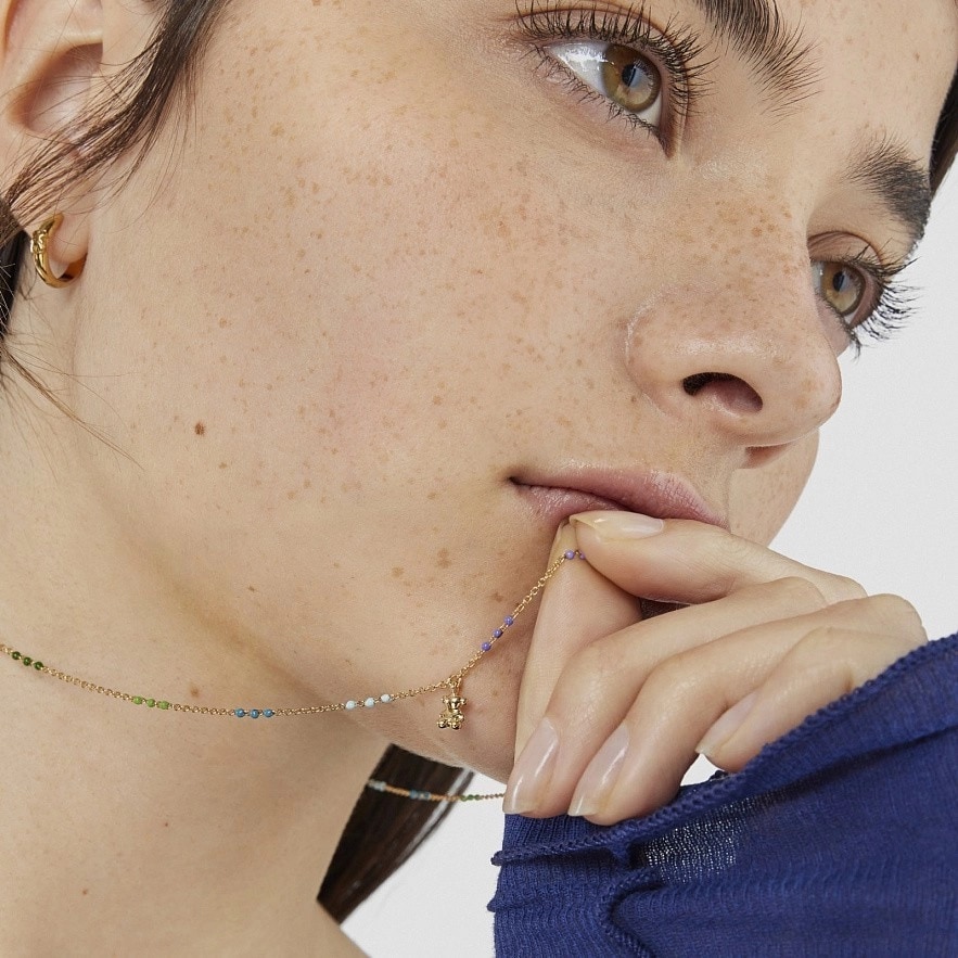 Намисто TOUS Bold Bear зі срібла 925 проби з покриттям Vermeil з емальованими кульками різних кольорів у вкрапленнях ланцюжка та мотиву ведмедика.Розмір ведмедика: 5,35 мм. Довжина намиста: 40-45 см. Застібка на карабін.