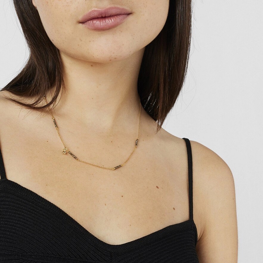 Намисто TOUS Bold Bear зі срібла 925 проби з покриттям Vermeil та піриту.Намисто із вкрапленням дорогоцінних каменів і ведмедиком. Розмір дорогоцінного каменю: 2 мм. Розмір ведмедика: 5,35 мм. Довжина намиста: 40-45 см. Застібка на карабін.