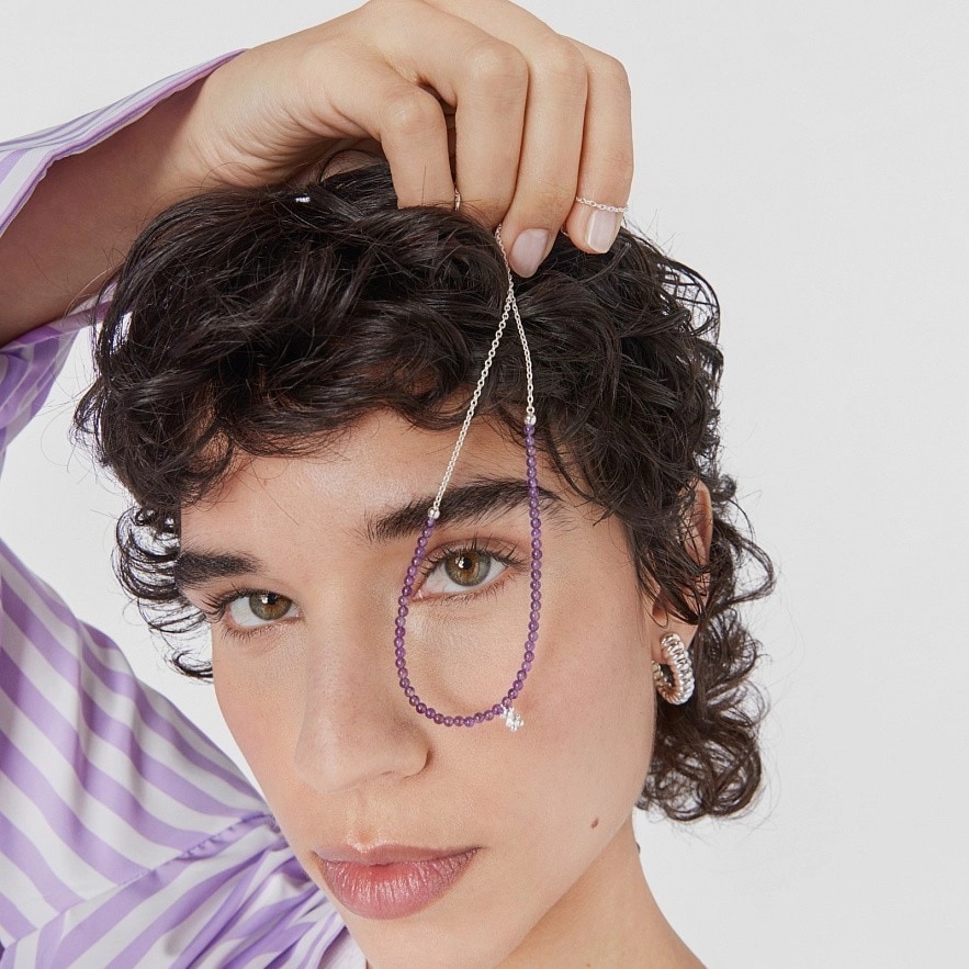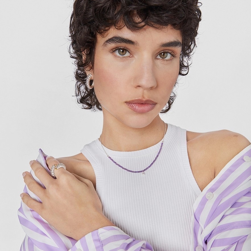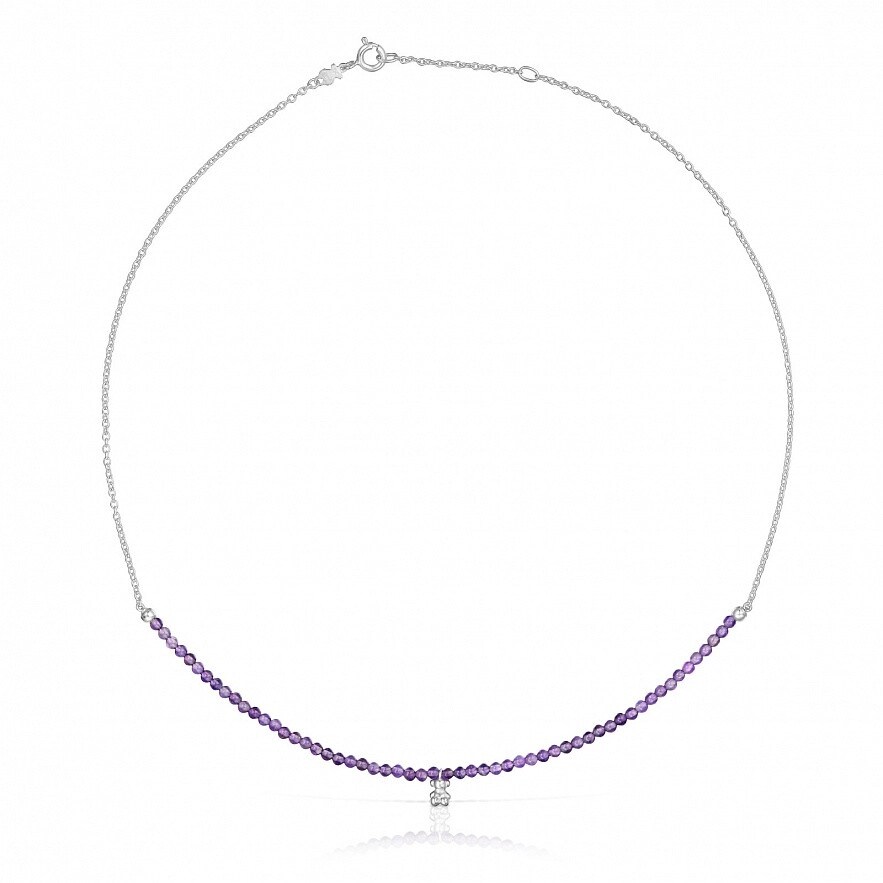 Намисто TOUS Bold Bear зі срібла 925 проби та аметисту зі срібним кулоном у вигляді ведмедика. Розмір дорогоцінних каменів: 2-2,5мм. Розмір ведмедика: 5,35мм. Довжина намиста: 42-45см. Пружинна застібка-кільце.