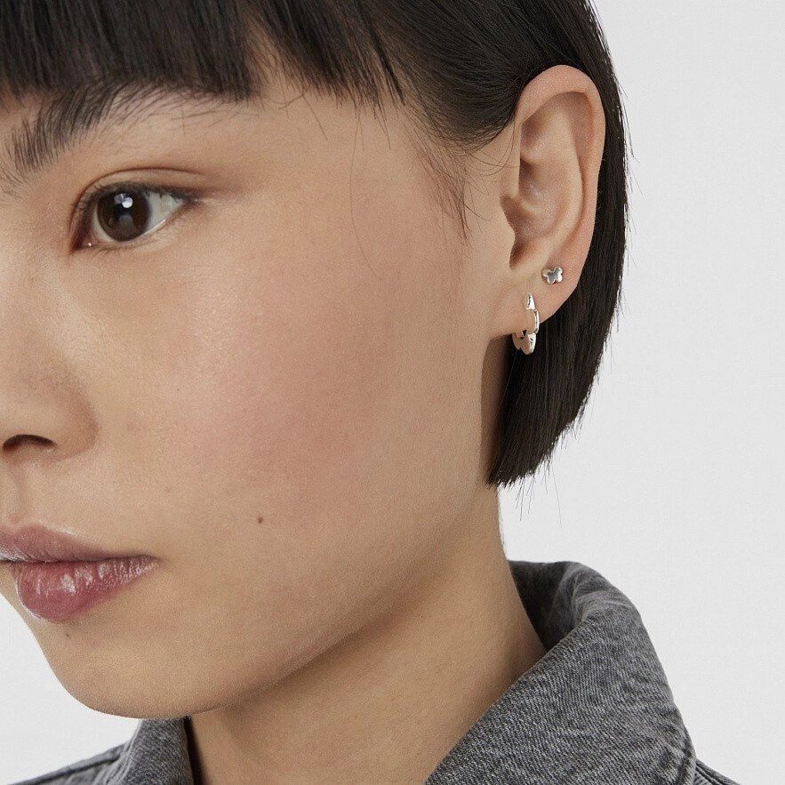 Сережки-кільця TOUS Bold Motif із стерлінгового срібла з квітковим мотивом. Діаметр кільця: 8 мм. Розмір мотиву: 15 мм. Застібка-пусет.