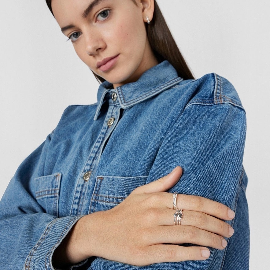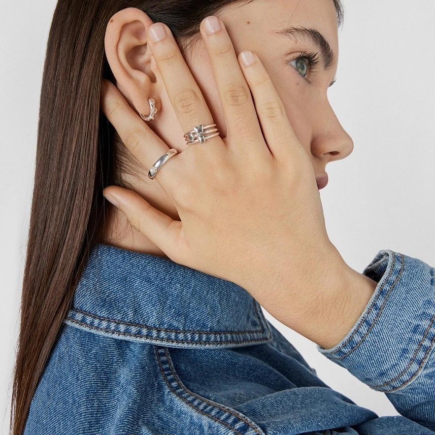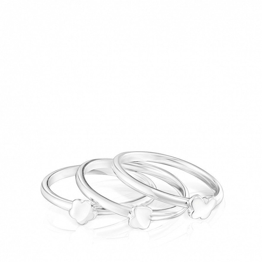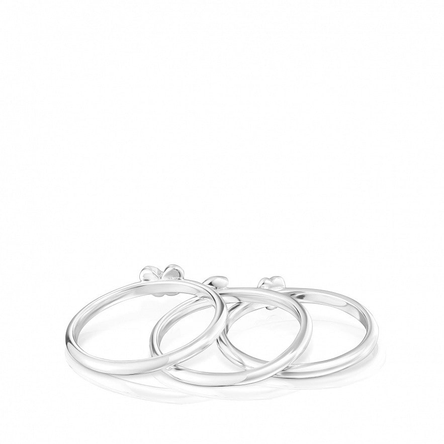 Набір із трьох каблучок TOUS Bold Motif зі срібла 925 проби з мотивами квітів, ведмедів і метеликів. Розмір малюнка: 4 мм. Товщина кільця: 1,5 мм.