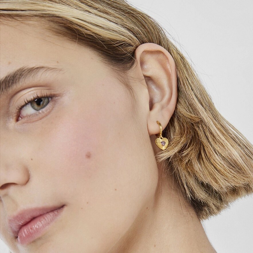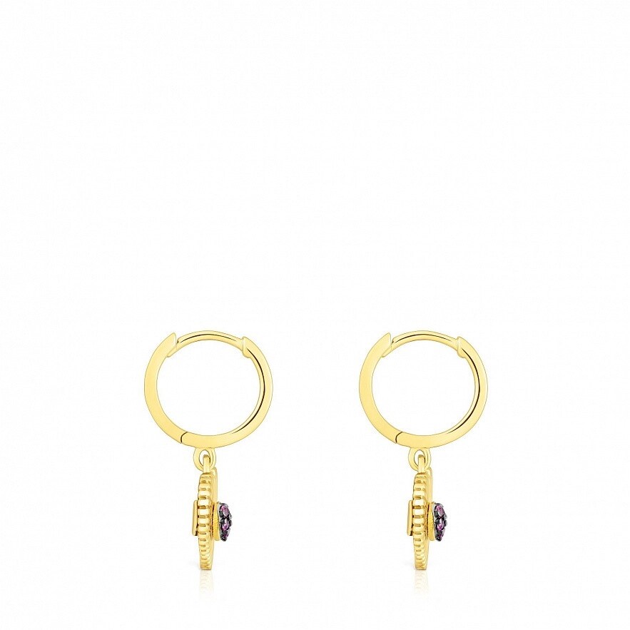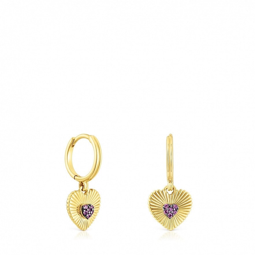 TOUS Iris Motif сережки-кільця зі срібла 925 проби з покриттям Vermeil з висячими сердечками та родолітом. Розмір підвіски: 10мм. Розмір сердечка з родоліту: 4мм. Діаметр обруча: 9мм.