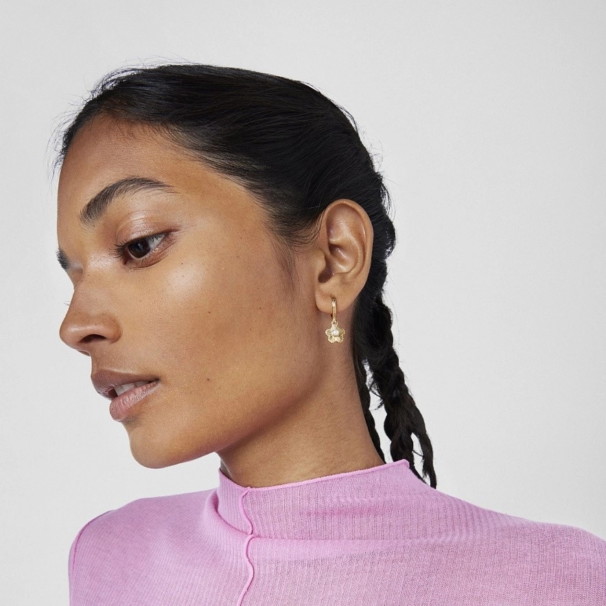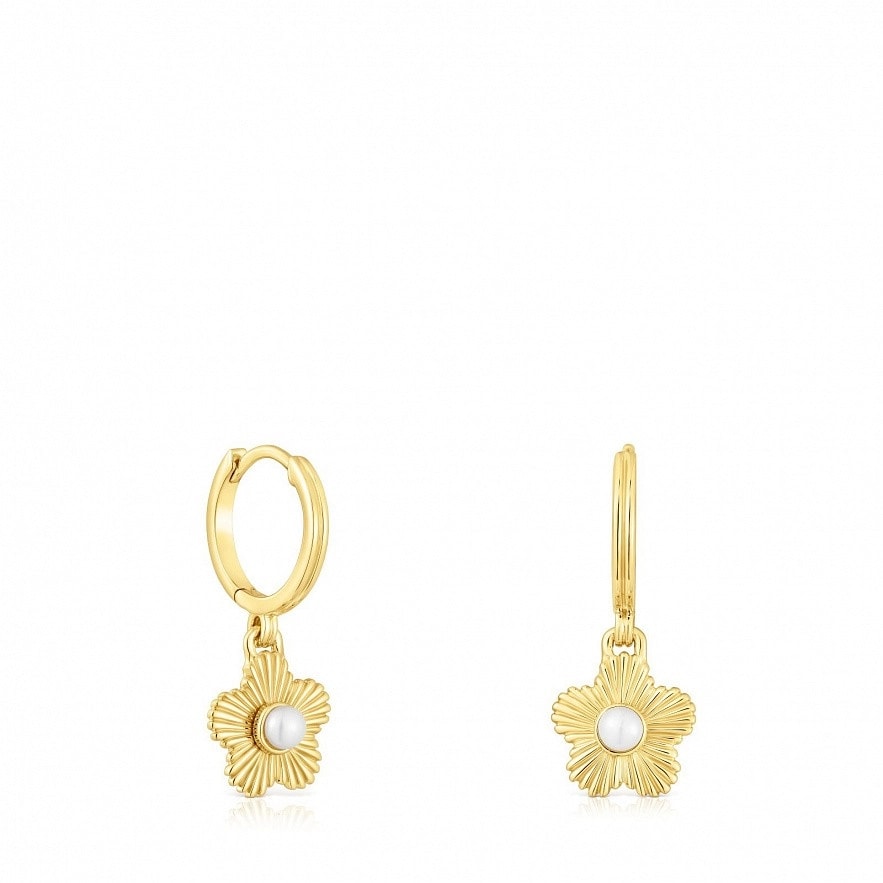 TOUS Iris Motif сережки-кільця зі срібла 925 проби з покриттям Vermeil з висячими квітковими шармами та культивованою перлиною. Розмір підвіски: 10мм. Розмір культивованої перлини: 3мм. Діаметр кільця: 10мм.