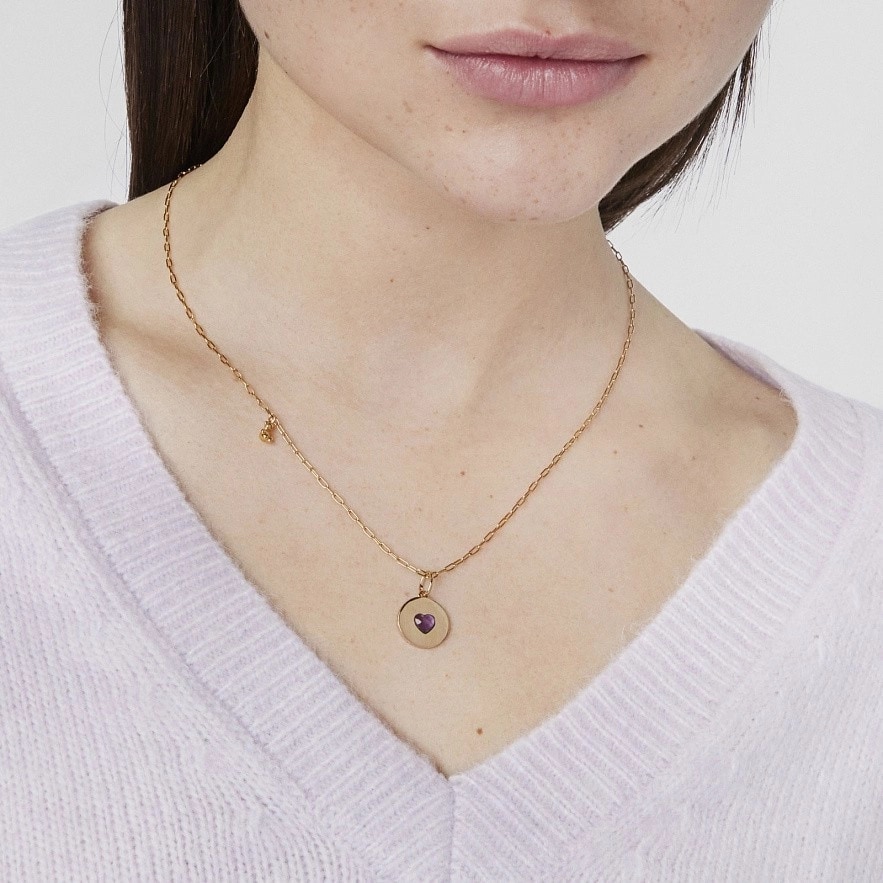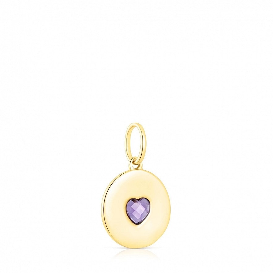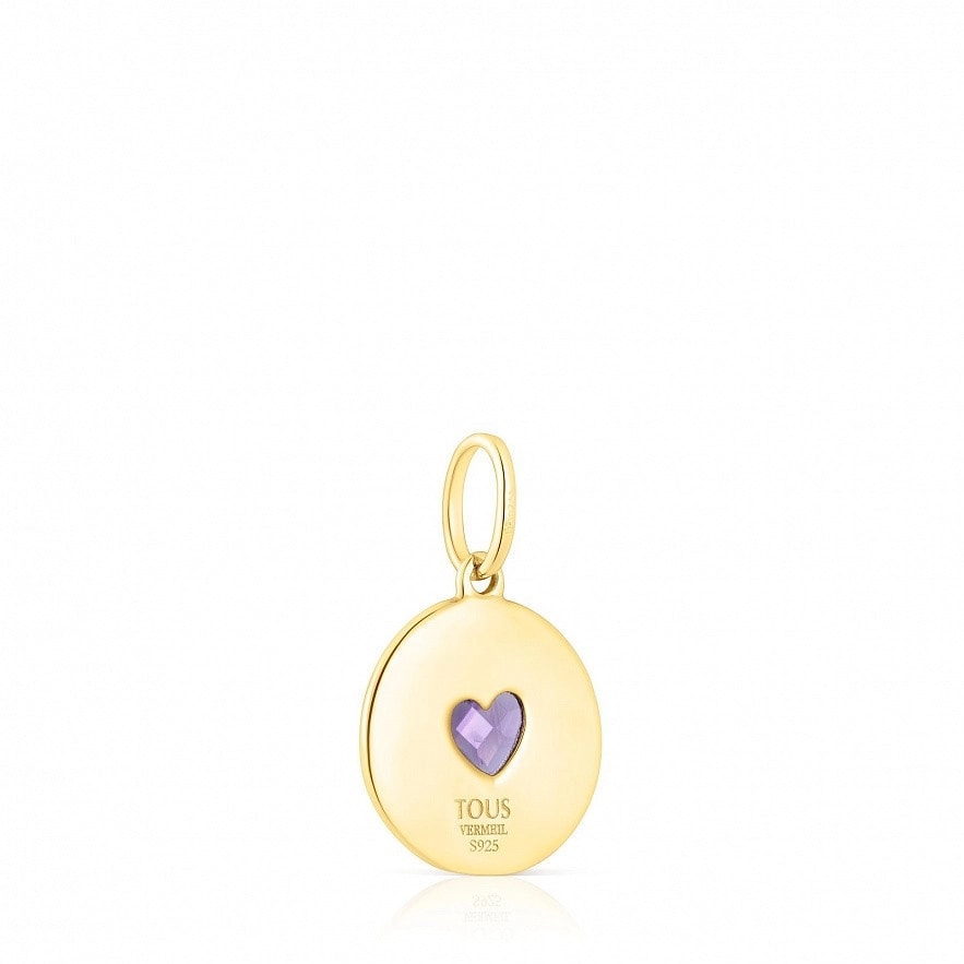 TOUS Aelita кулон-медальйон зі срібла 925 проби з покриттям Vermeil з гранованим аметистом у формі серця в центрі. Розмір дорогоцінного каменю: 4,5 мм. Розмір підвіски: 13мм. Цей товар не включає ланцюжок.