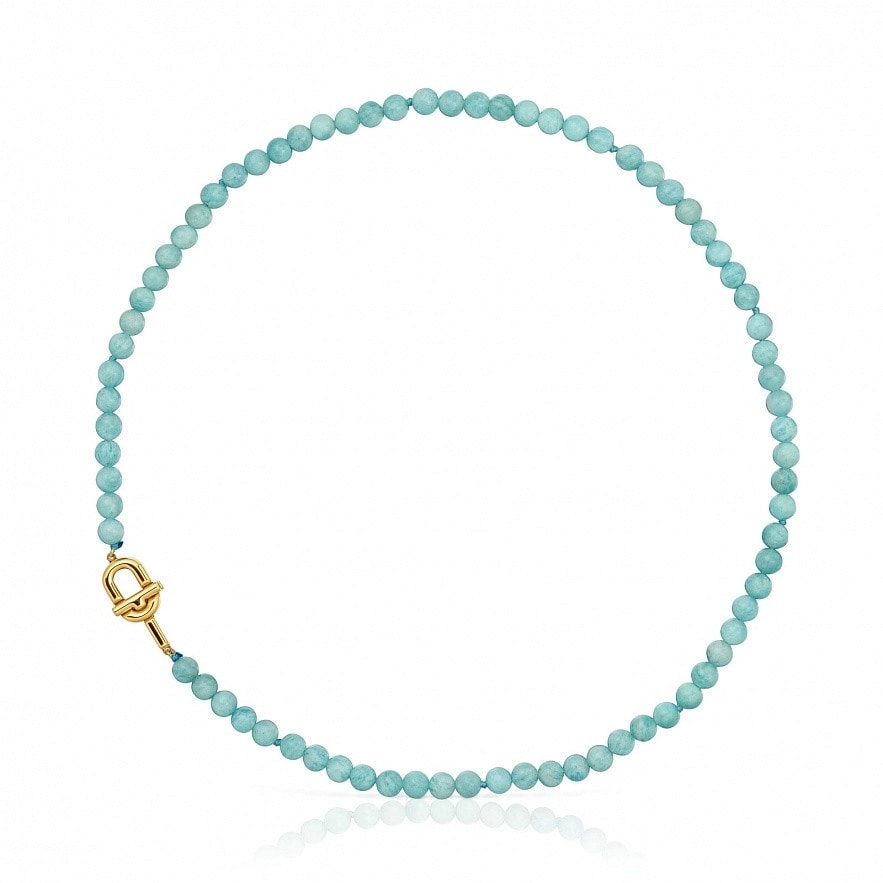Намисто TOUS Manifesto зі срібла 925 проби з покриттям Vermeil з амазонітом. Розмір дорогоцінних каменів: 5мм. Розмір застібки: 19 х 9 мм.