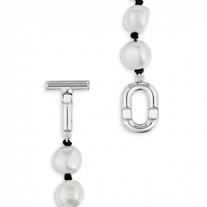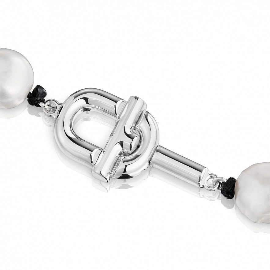 Намисто TOUS Manifesto зі срібла 925 проби, з культивованими перлами на чорному шнурку.