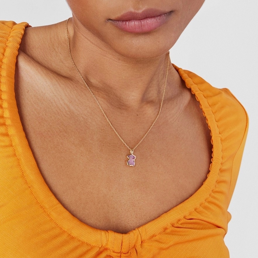 Ланцюг і кулон TOUS Gregal зі срібла 925 проби з покриттям Vermeil та з мотивом кулона-ведмедика з бузковою емаллю всередині та силуетом зі срібла 925 проби з покриттям Vermeil . Розмір кулону: 11,2 х 9,3 мм. Довжина ланцюга: 40-45см. Пружинна застібка-кільце.