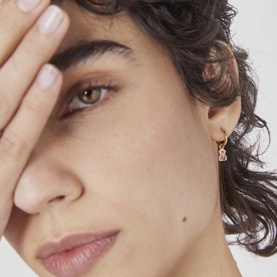 Сережки-кільця TOUS Gregal зі срібла 925 проби з покриттям Vermeil та з мотивом кулона-ведмедика із рожевою емаллю всередині та силуетом зі срібла 925 проби з покриттям Vermeil . Діаметр кільця: 8мм. Розмір мотиву: 7 x 5,9 мм.