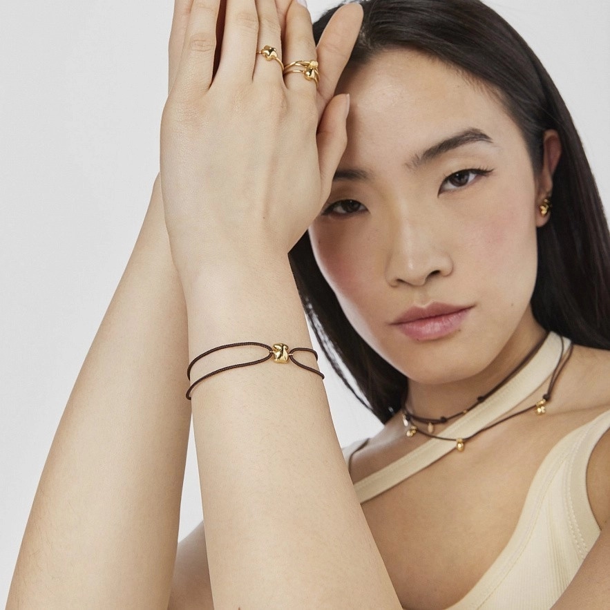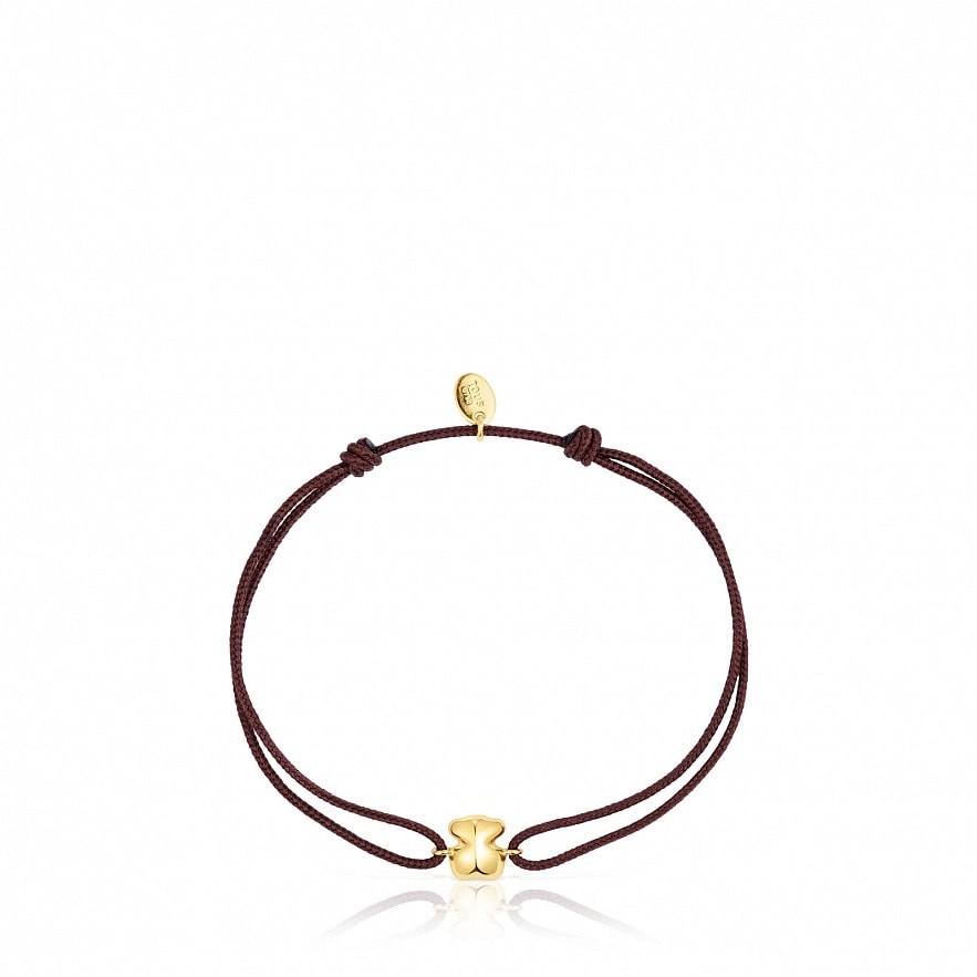 TOUS Balloon браслет із ведмедиком із 18-каратного золота та коричневим шнуром. Розмір мотиву: 8x6,64мм. Максимальна довжина браслета: 20см. Регульоване закриття шнура.