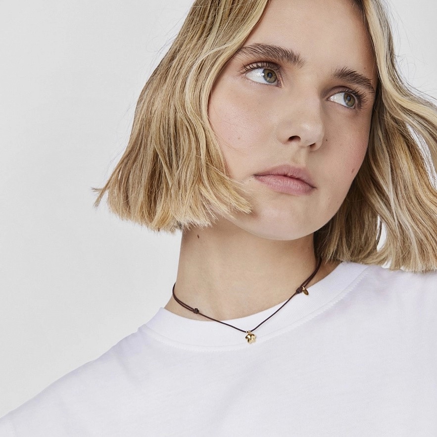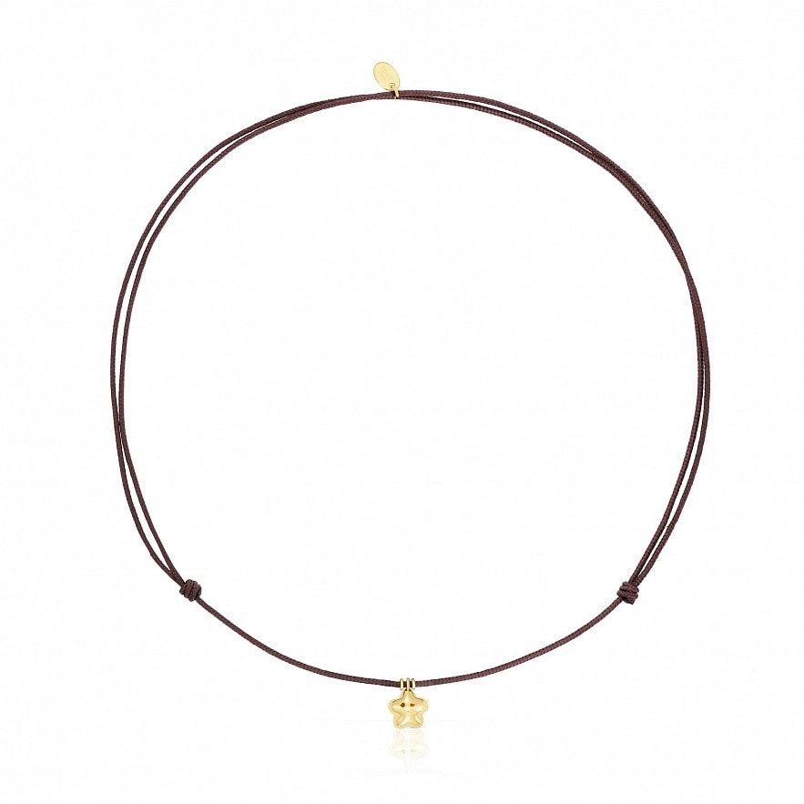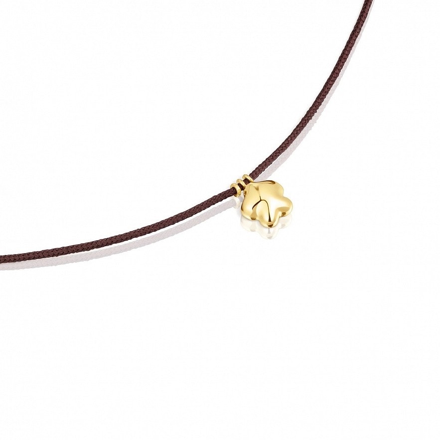 Намисто TOUS Balloon з квітковим мотивом із 18-каратного золота та коричневим шнуром. Розмір мотиву: 8x8,24мм. Максимальна довжина намиста: 65см. Регульоване закриття шнура.