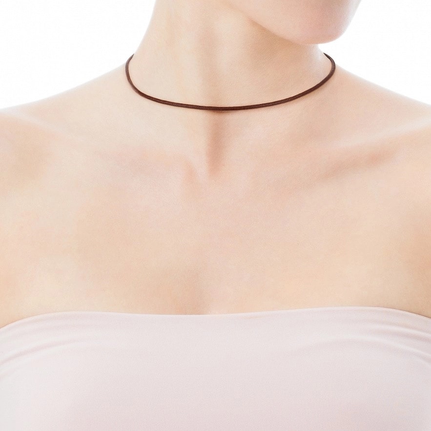 Ремінець на застібці TOUS Chokers, зі срібла з покриттям Vermeil та коричневої шкіри. Довжина: 40 см. Vermeil : Срібло, покрите шаром жовтого золота 18kt.