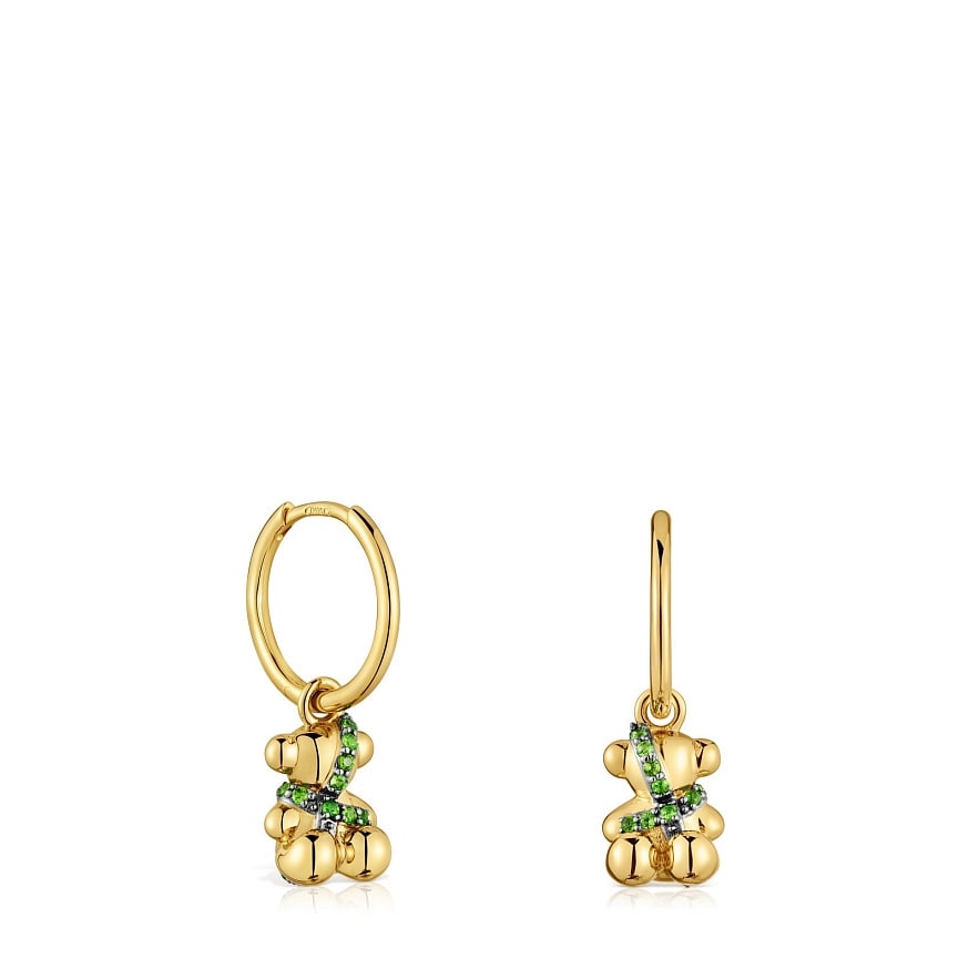 Сережки TOUS Lligat зі срібла 925 проби з покриттям Vermeil та підвішеним ведмедиком з круглим мотивом з хромового діопсиду. Розмір дорогоцінного каменю: 0,8 мм. Розмір мотиву: 9х7,2 мм.
