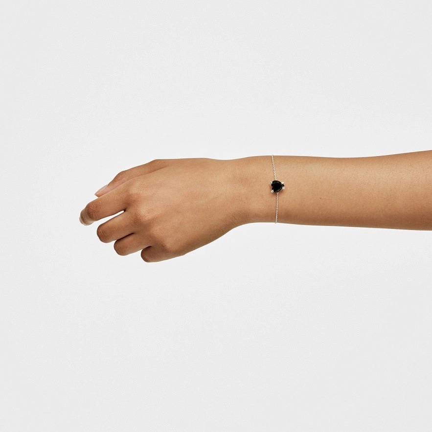 Браслет TOUS Color Pills зі срібла 925 проби та гранованого оніксу у формі серця. Розмір дорогоцінного каменю: 10,2 х 9,8 мм. Довжина браслета: 17,5 см. Застібка-карабін.
