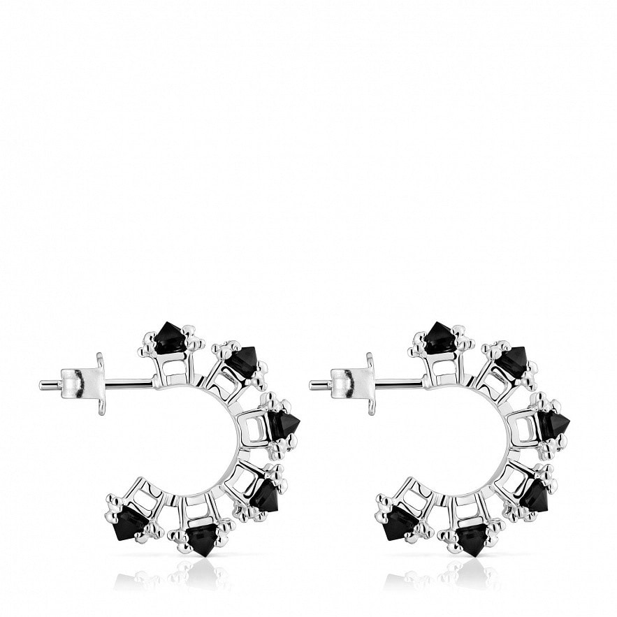 Сережки-кільця TOUS Color Pills зі срібла 925 проби та гранованого круглого оніксу. Розмір дорогоцінного каменю: 4 мм. Внутрішній діаметр кулона: 9 мм. Застібка-пусет.