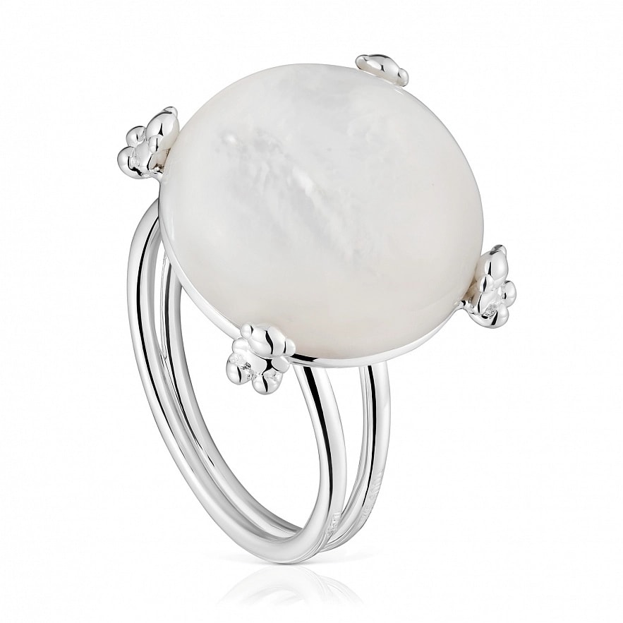 Каблучка TOUS Color Pills зі срібла 925 проби з перламутровим кабошоном круглого огранювання. Розмір перламутру: 16 мм. Розмір ведмедика: 3,8 мм.