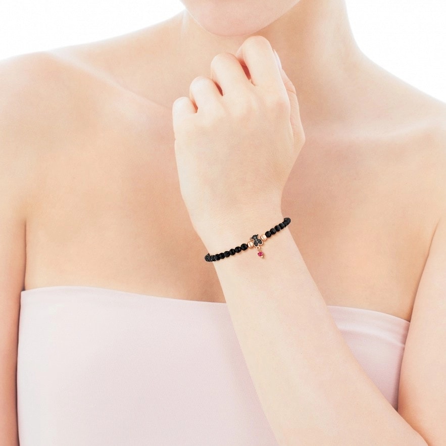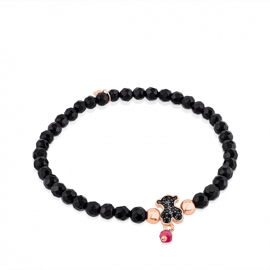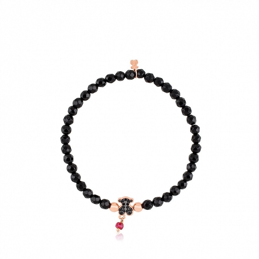 Браслет TOUS Motif, зі срібла 925 проби з рожевим покриттям Vermeil з рубіном, оніксом та шпінеллю. Довжина: 16 см. Vermeil : Срібло покрите шаром рожевого золота 18kt.