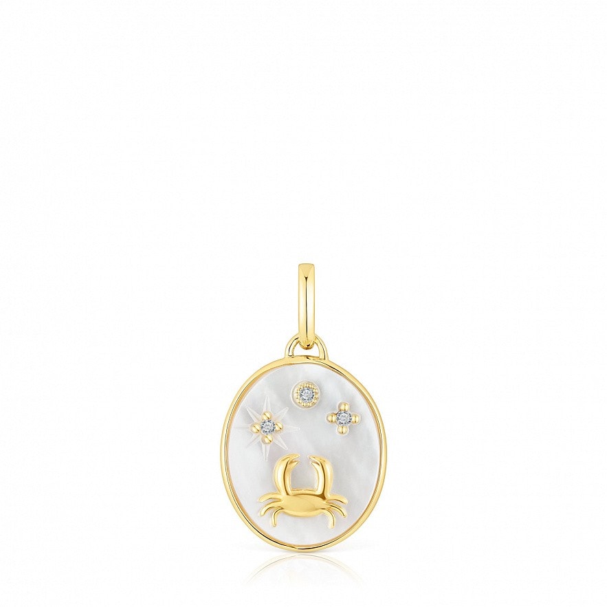Підвіска TOUS гороскоп Рак зі срібної вермелі з перламутром і трьома топазами. На зворотному боці кулона гравірування сузір'я Великої Ведмедиці. Розмір топазу: 1,2 мм. Розмір підвіски: 14 х 12 мм. Цей товар не включає ланцюг.