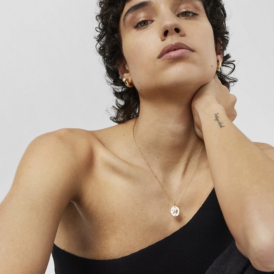 Підвіска TOUS гороскоп Діва з перламутрового срібла з перламутром і трьома топазами. На зворотному боці кулона гравірування сузір'я Великої Ведмедиці. Розмір топазу: 1,2 мм. Розмір підвіски: 14 х 12 мм. Цей товар не включає ланцюг.