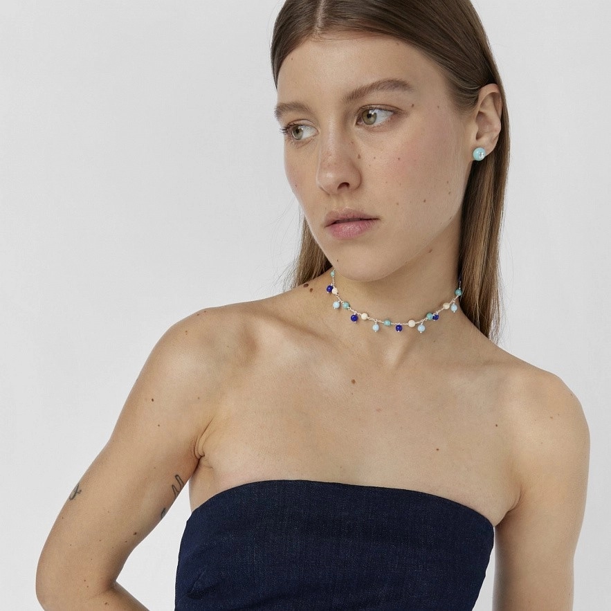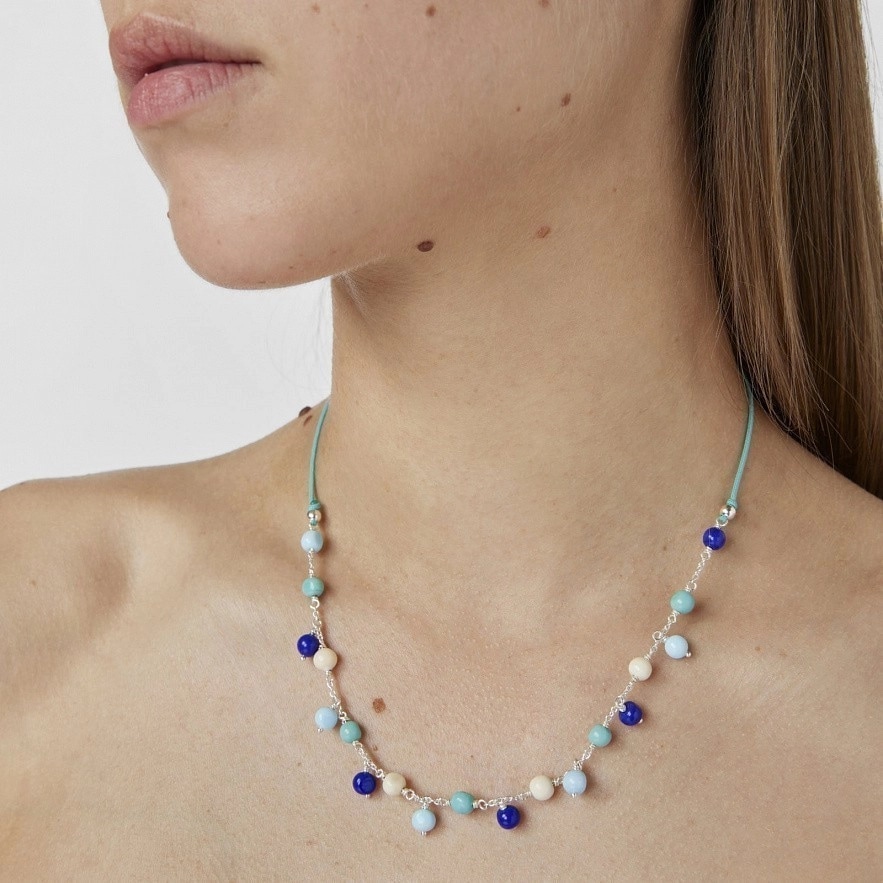 Регульоване намисто TOUS Icon Colors зі срібла 925 проби та нейлону блакитного кольору з кульками з кольорового муранського скла, як фіксованими, так і висячими. Розмір кульок: приблизно 6мм. Загальна довжина: 70см. Застібка-повзунок.