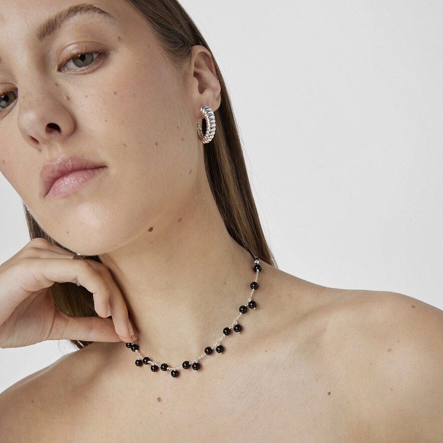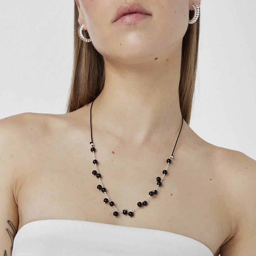Регульоване намисто TOUS Icon Color зі срібла 925 проби та нейлону чорного кольору з оніксовими кульками, як фіксованими, так і висячими. Розмір кульок: приблизно 6мм. Загальна довжина: 70см. Застібка-повзунок.