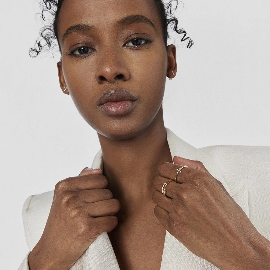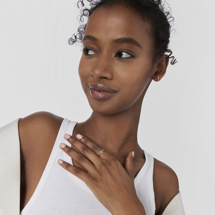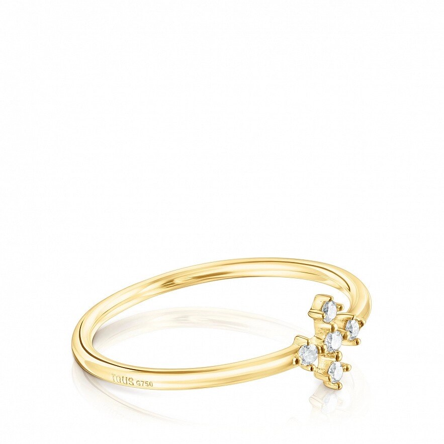 Каблучка з хрестом TOUS Les Classiques із 18-каратного золота з п’ятьма діамантами з блискучим огранюванням загальною вагою 0,08 карата. Якість діаманта: H/SI. Товщина каблучки: 1,3 мм.