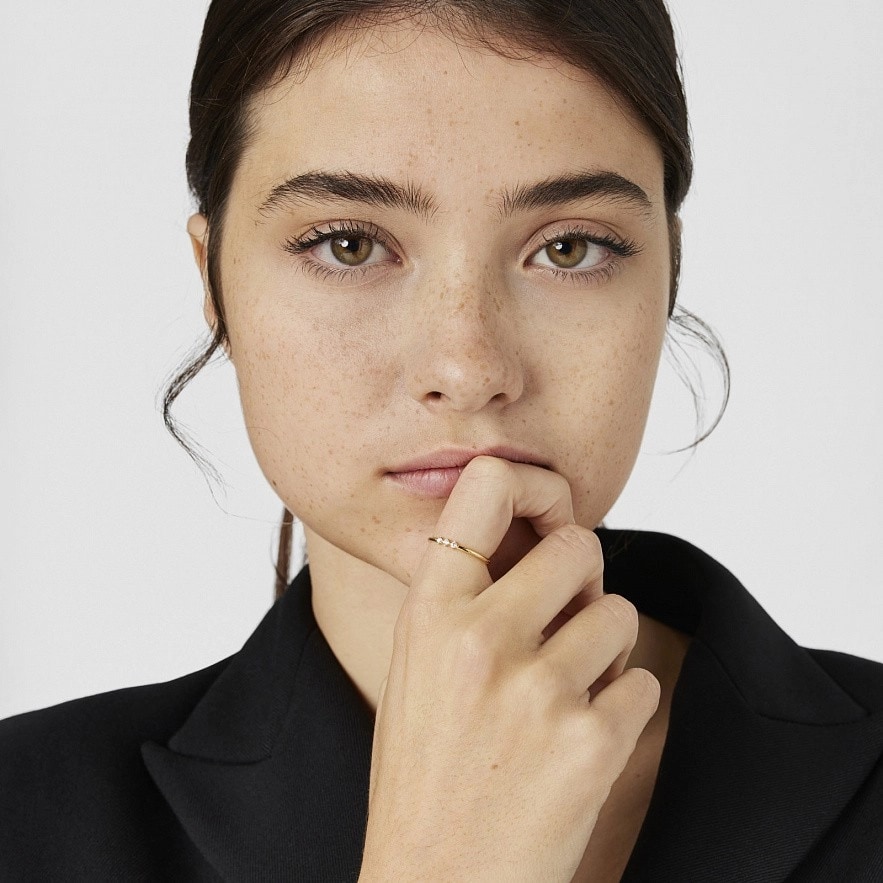 Каблучка TOUS Les Classiques із 18-каратного золота з трьома діамантами з блискучим огранюванням загальною вагою 0,07 карата. Якість діаманта: H/SI. Товщина каблучки: 1,3 мм.