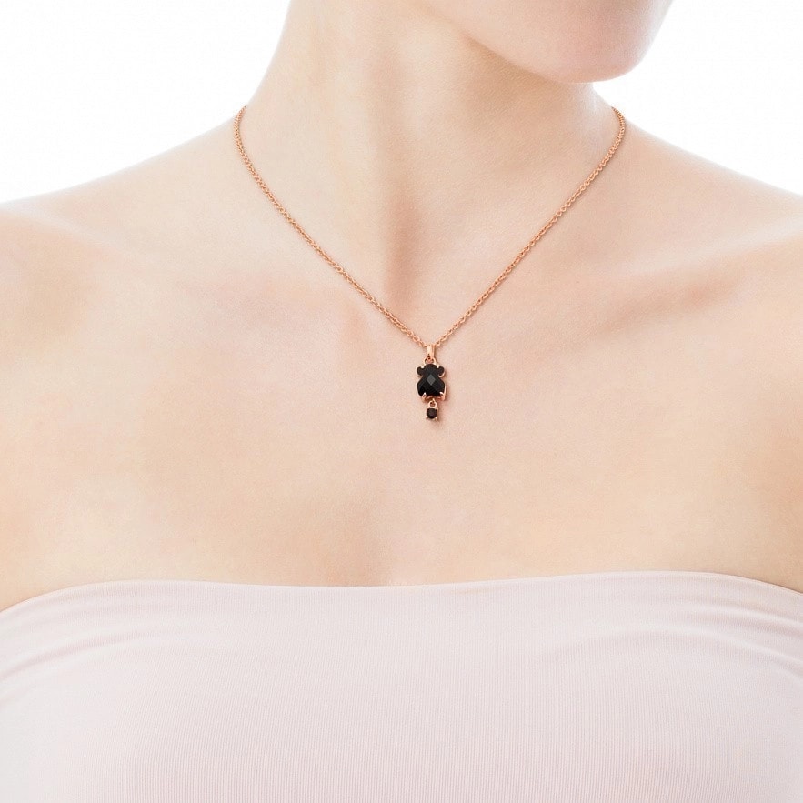 Ланцюг і кулон TOUS Erma, зі срібла з покриттям Vermeil , з оніксом. Розмір: 0,9 см. Довжина: 45 см. Vermeil : срібло, покрите шаром рожевого золота 18kt.