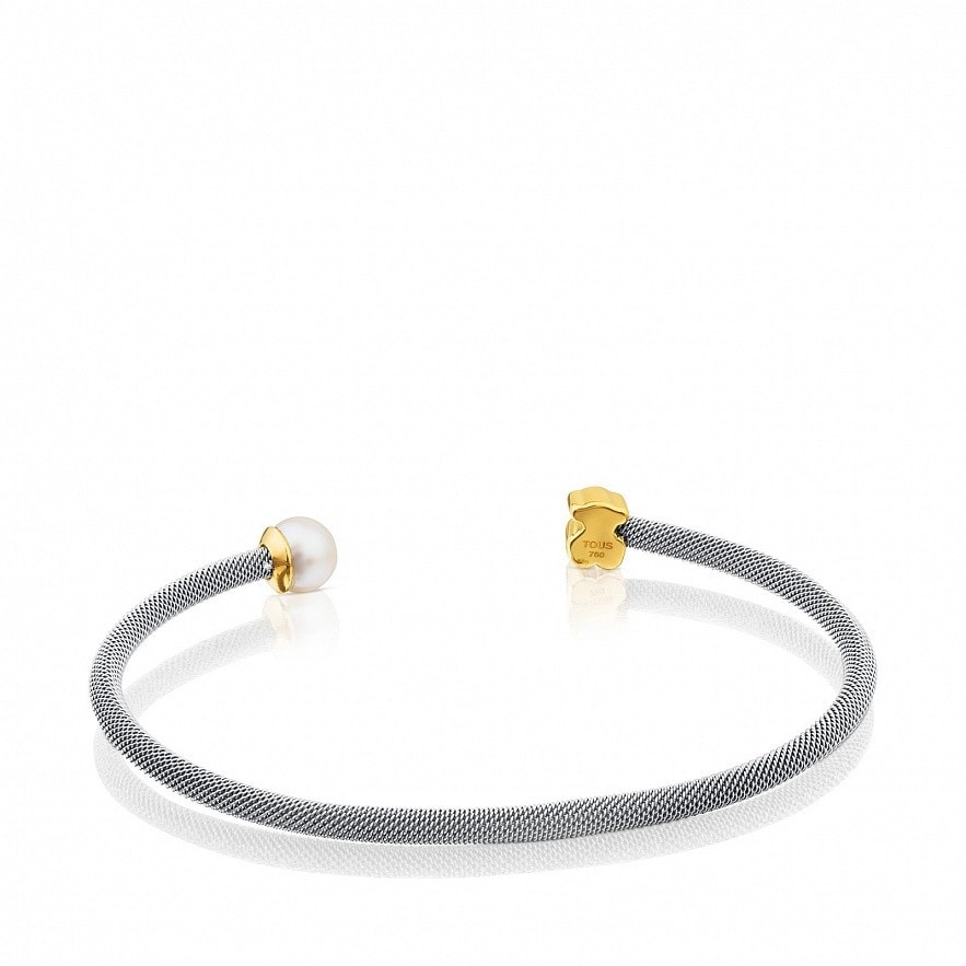 Браслет TOUS Icon Mesh з жовтого золота 750 проби та сталі з мішкою та перлиною. Розмір: 6,5 мм - 7мм.