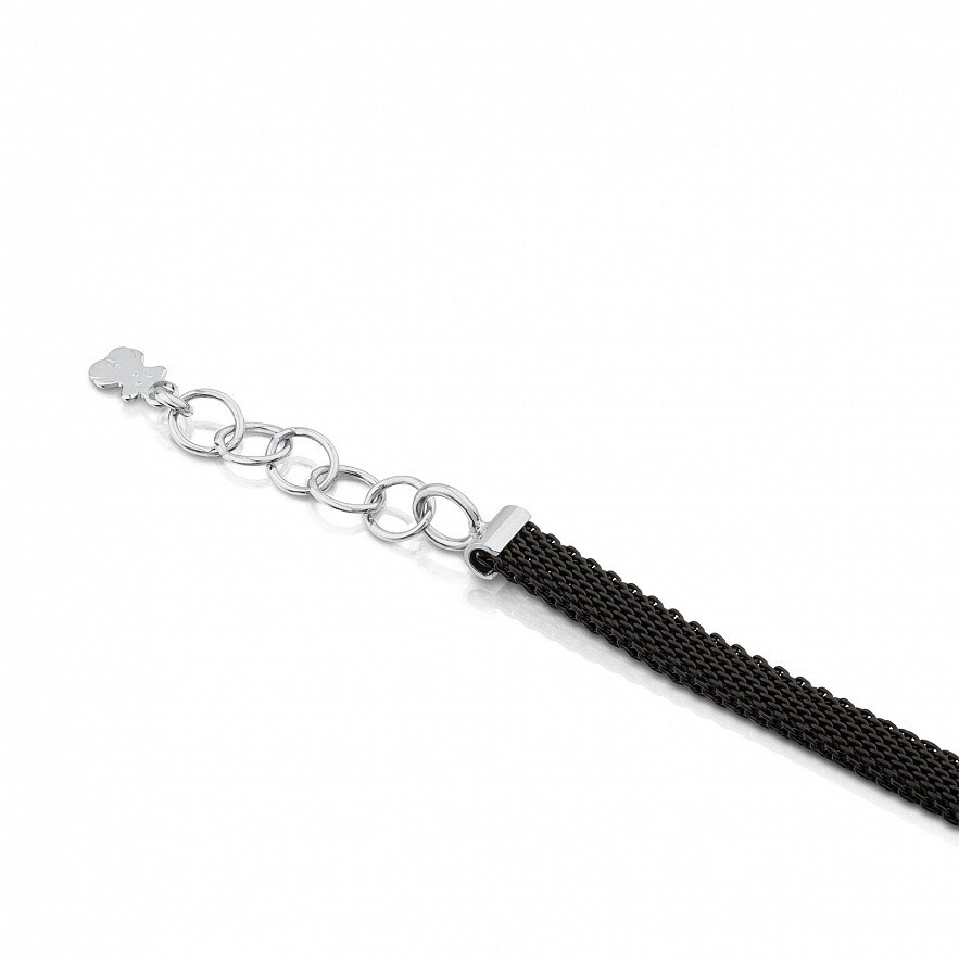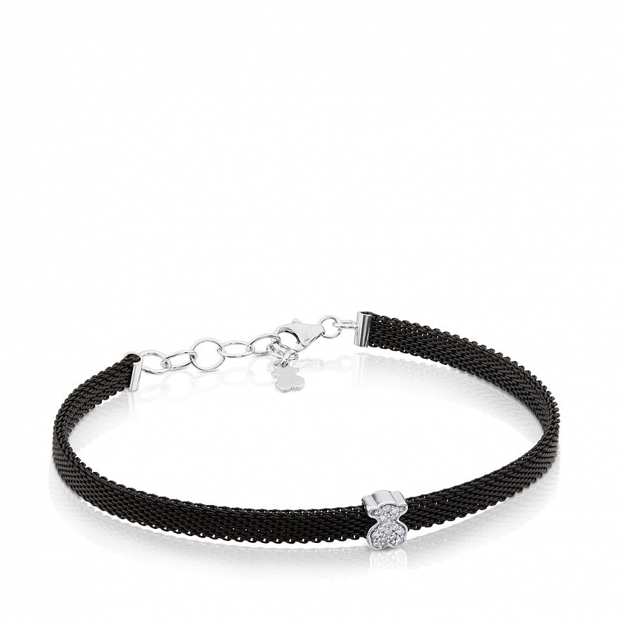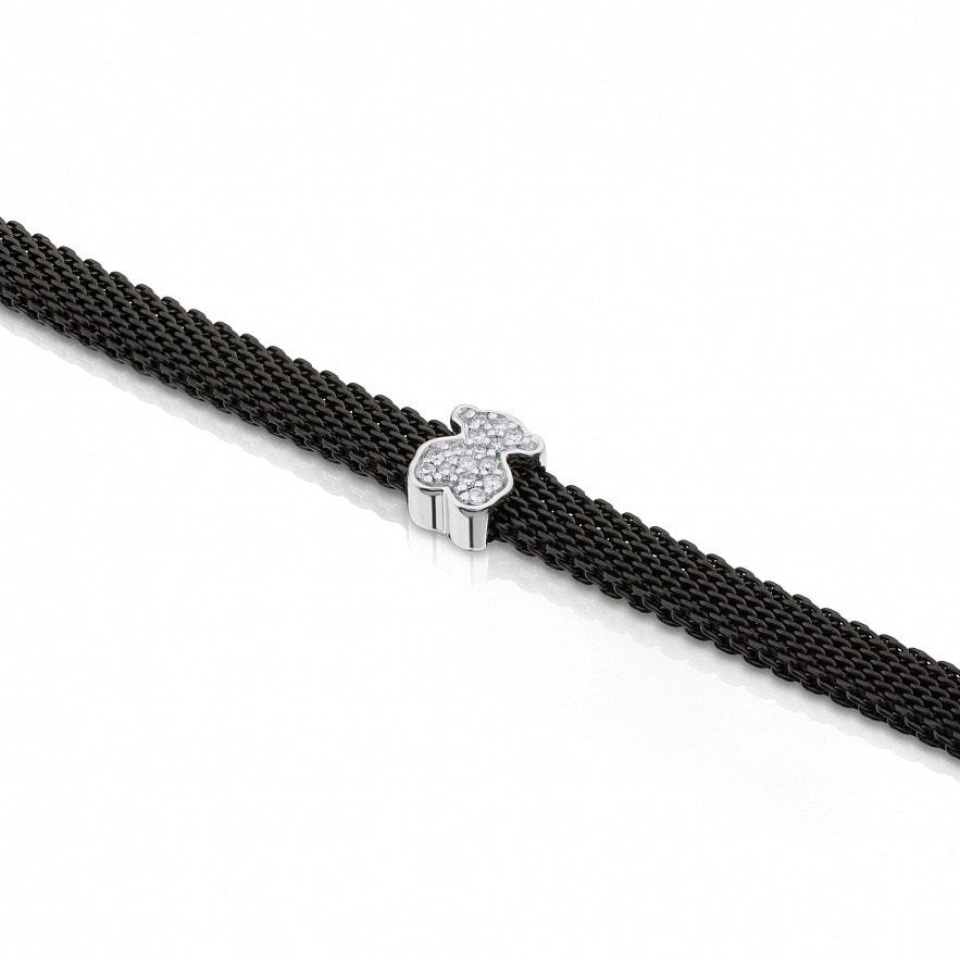 Браслет TOUS Icon Mesh із білого золота 750 проби і сталі з чорним іонним покриттям, та діамантами. Загальна вага вставки: 0,04 ct. Розмір: 6 мм. Довжина: 17,5 см.